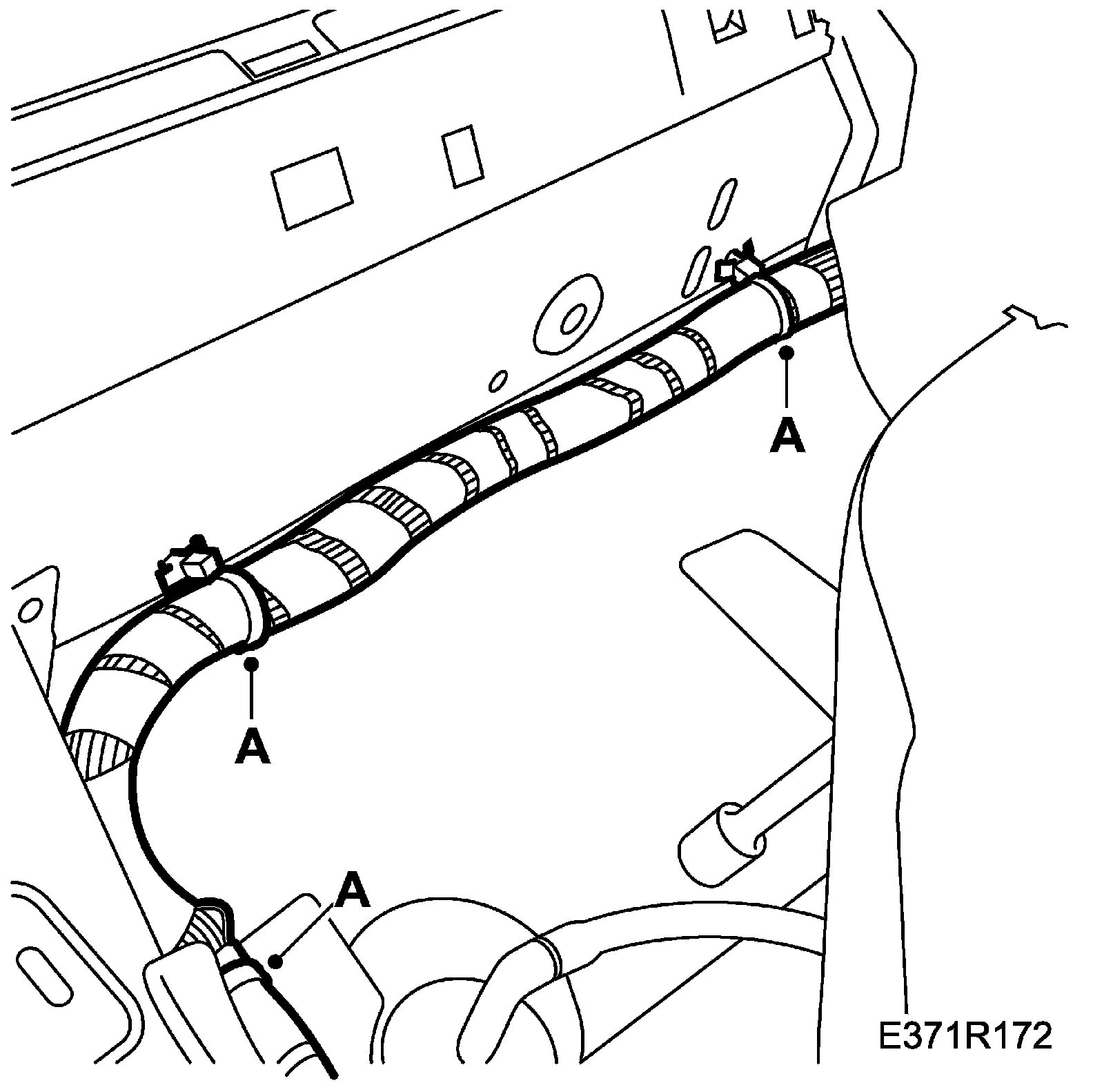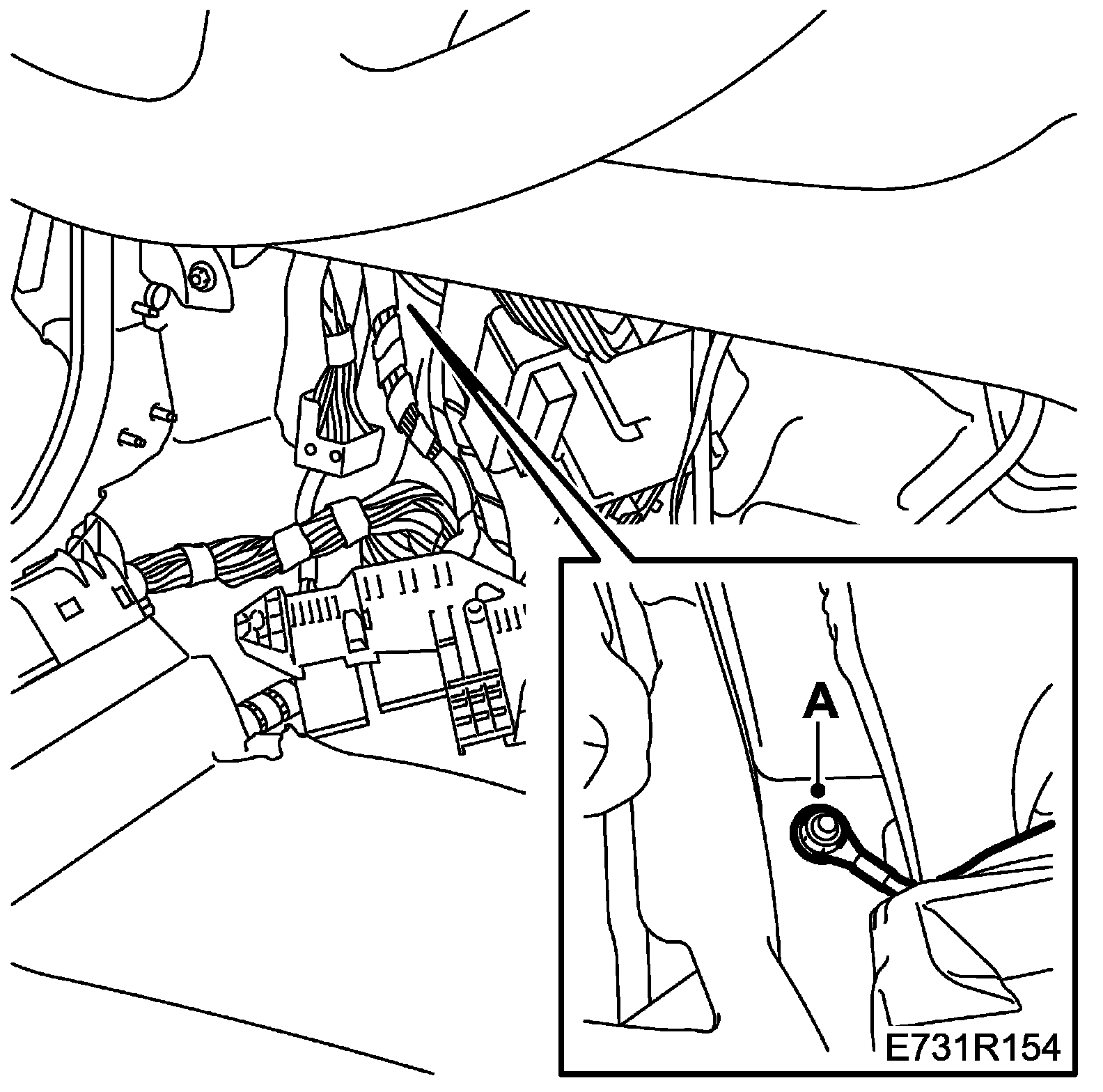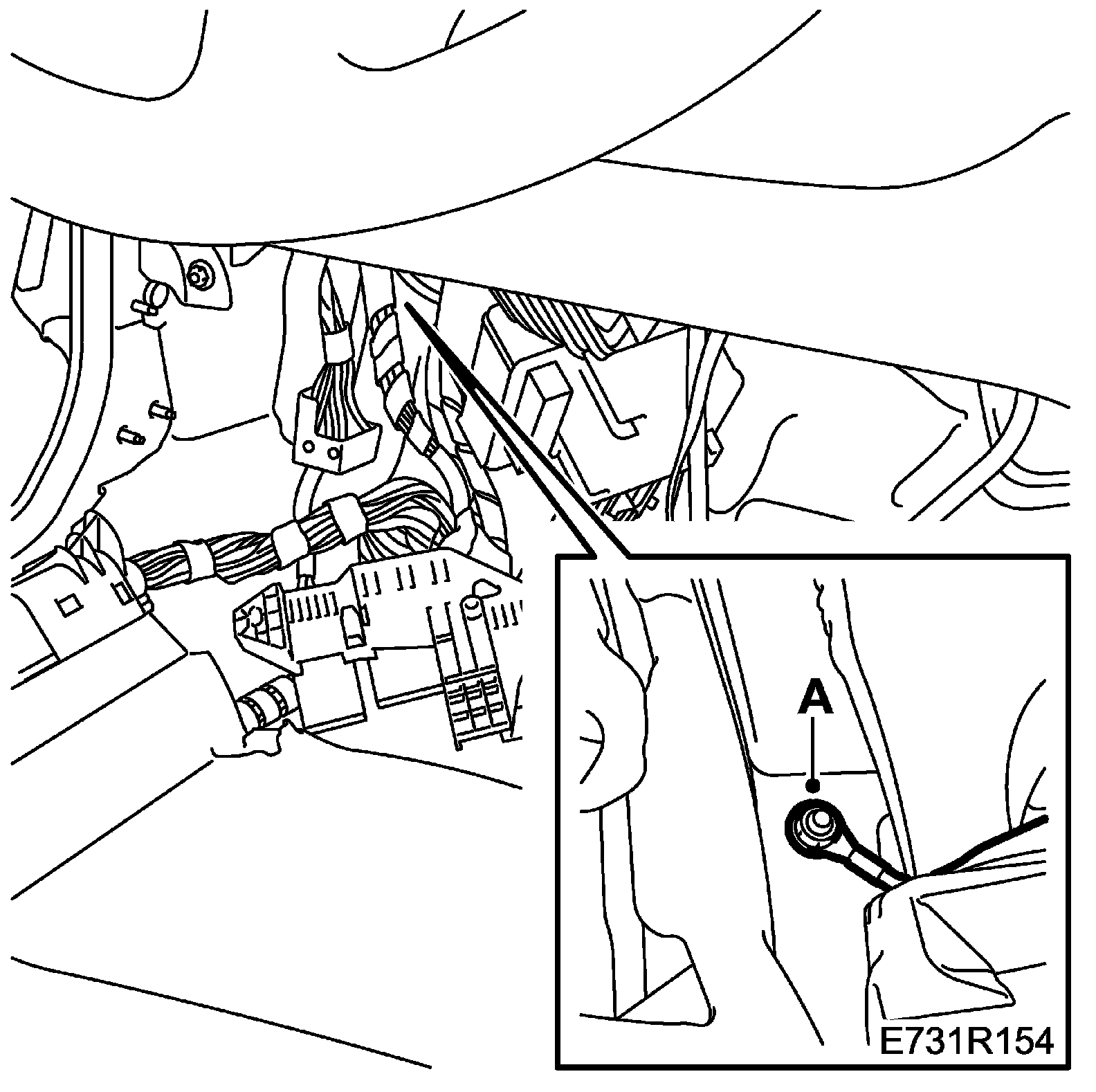 12. Position the wiring harness on the right-hand B-pillar and attach the fixings to the floor (A).