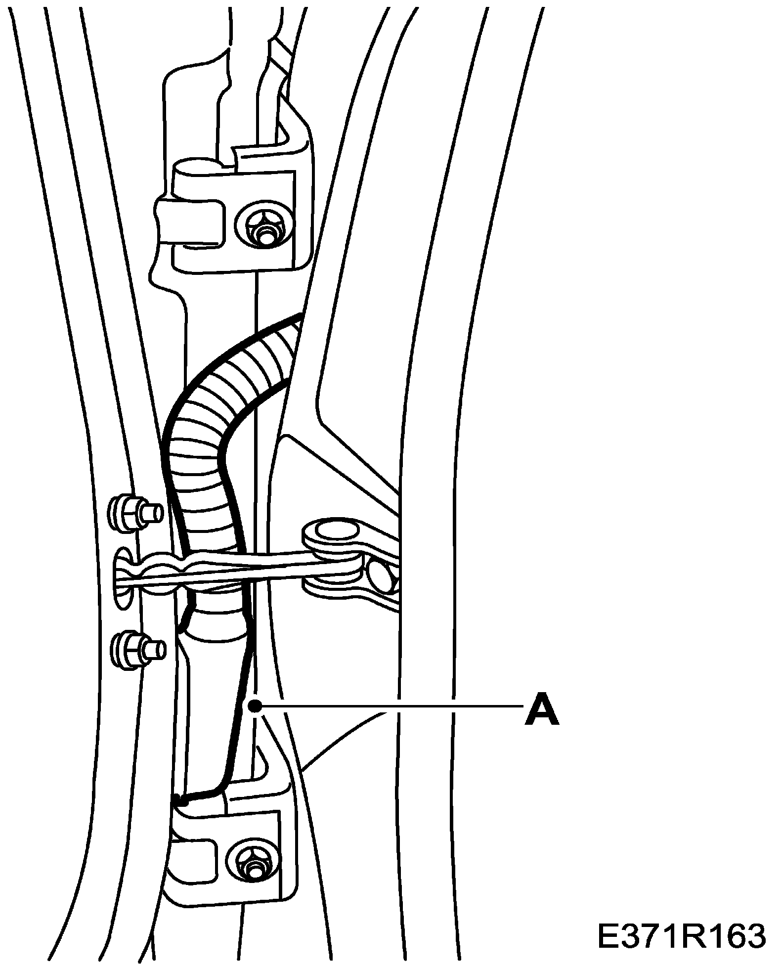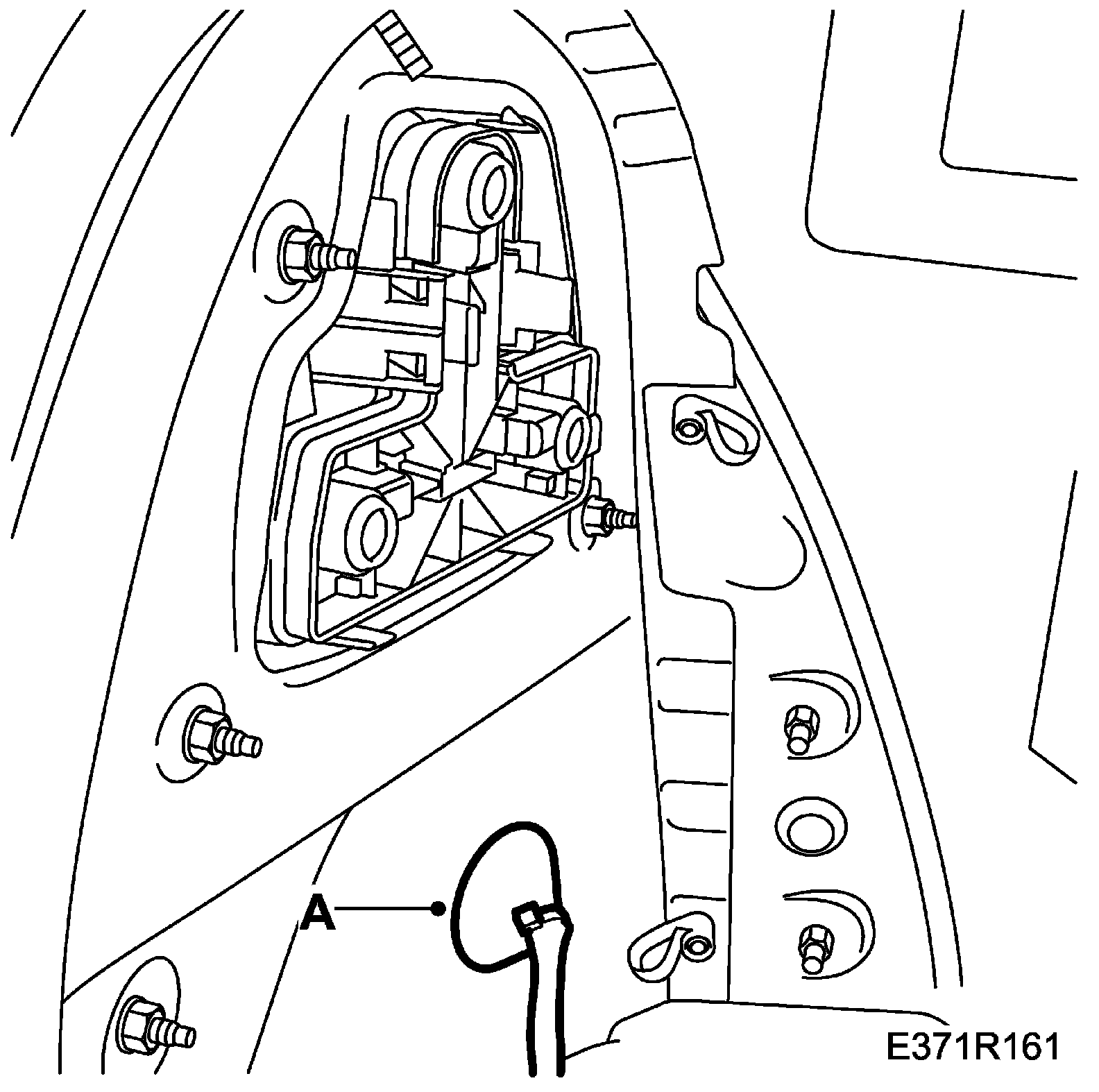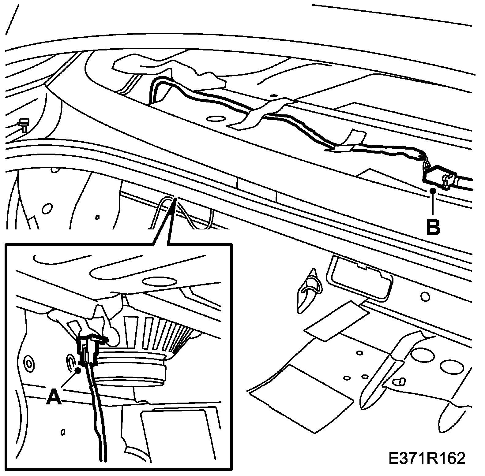 12. Position the wiring harness on the right-hand B-pillar and attach the fixings to the floor (A).