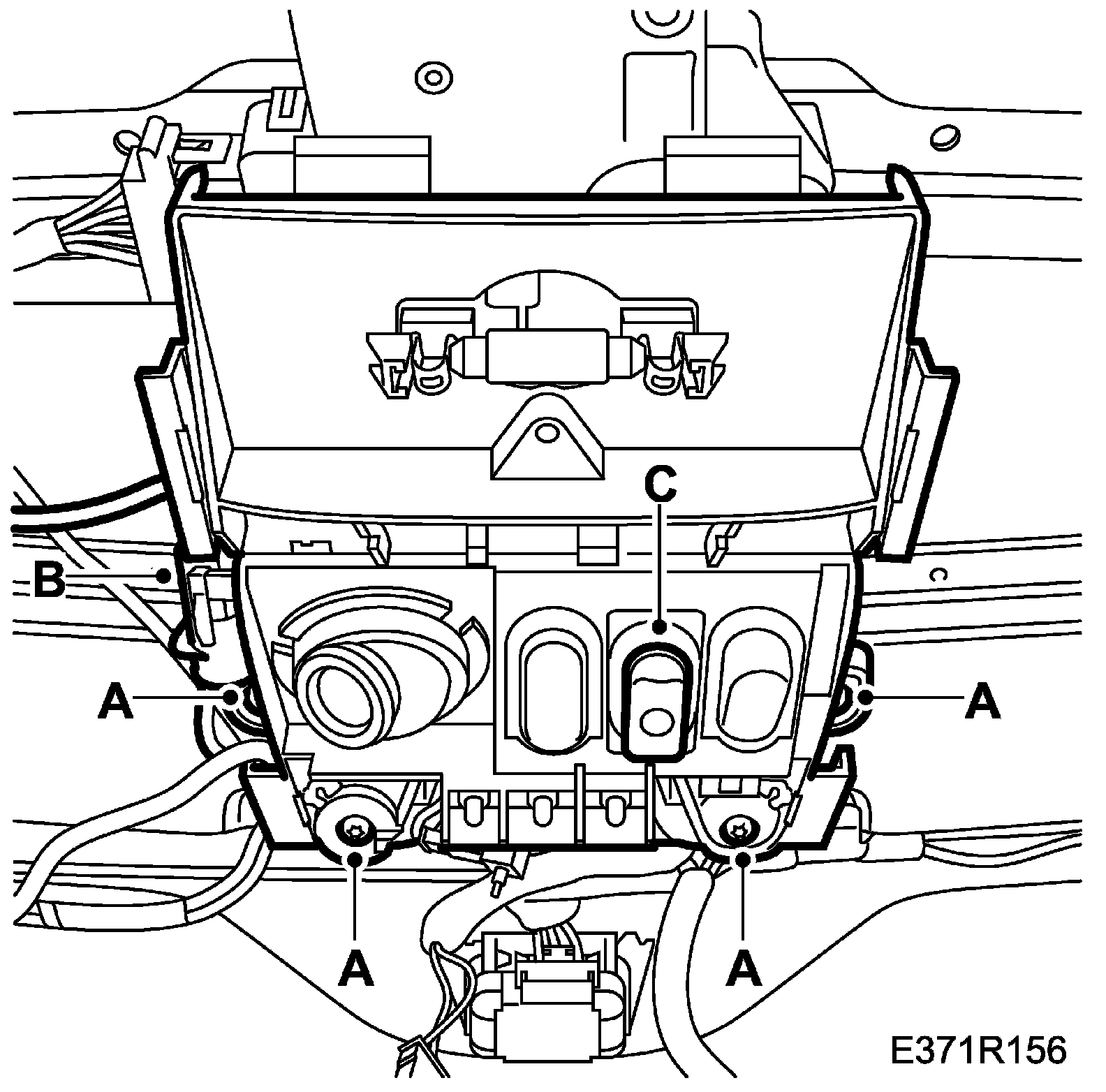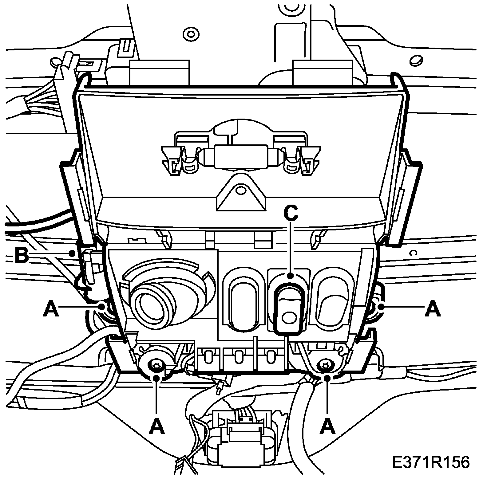 67. Detach the connector housings on the centre tunnel (C) and lift away the wiring harness for the panel.