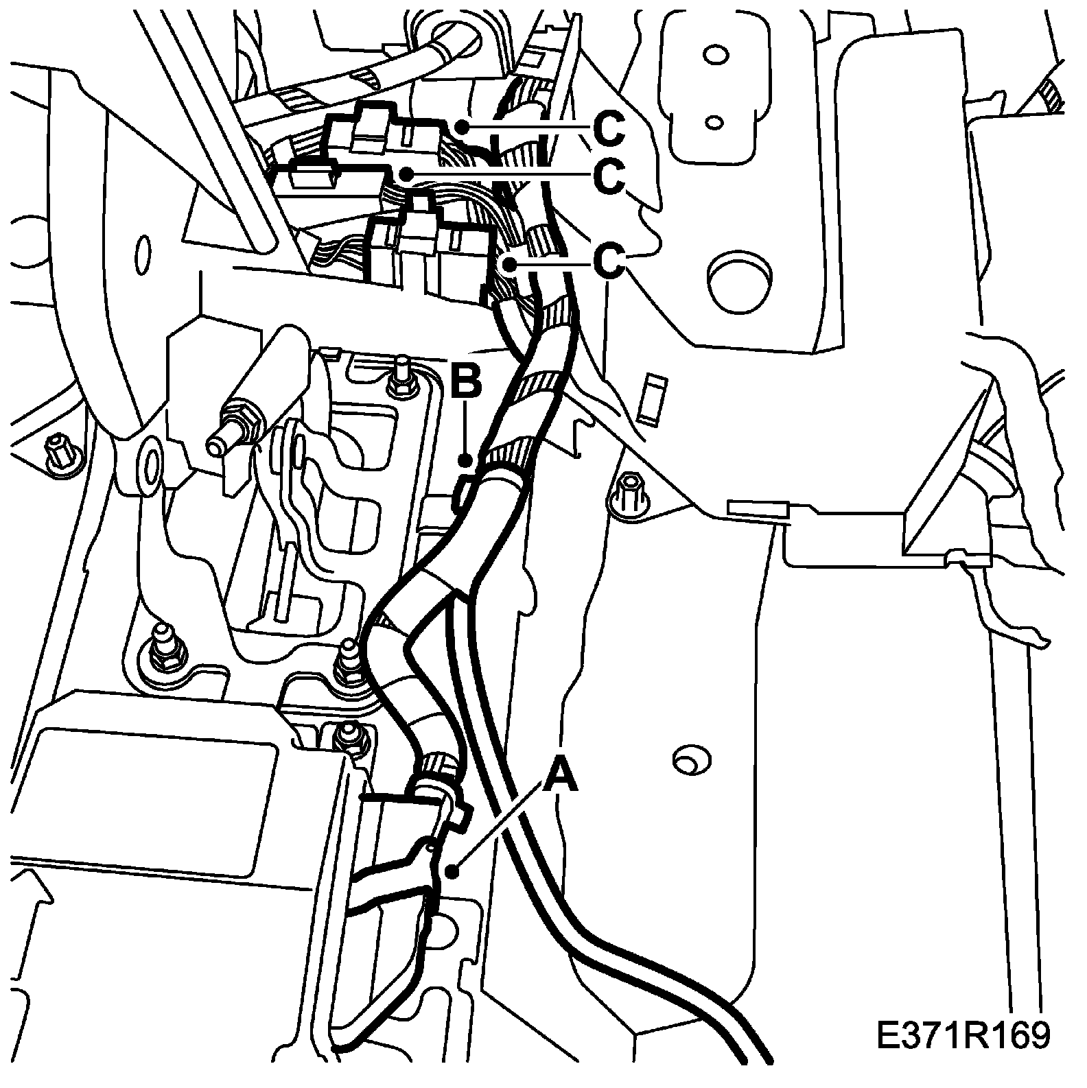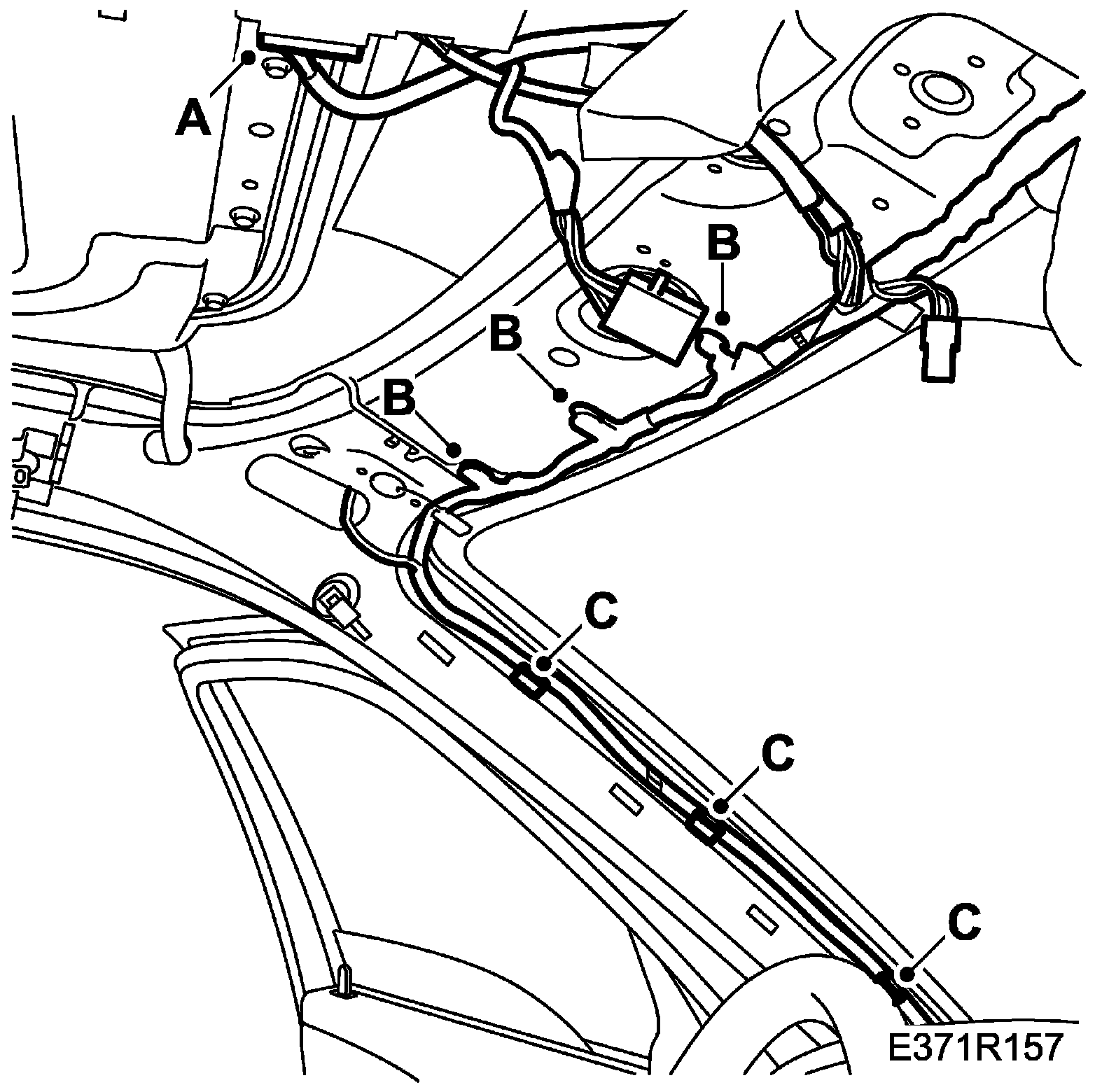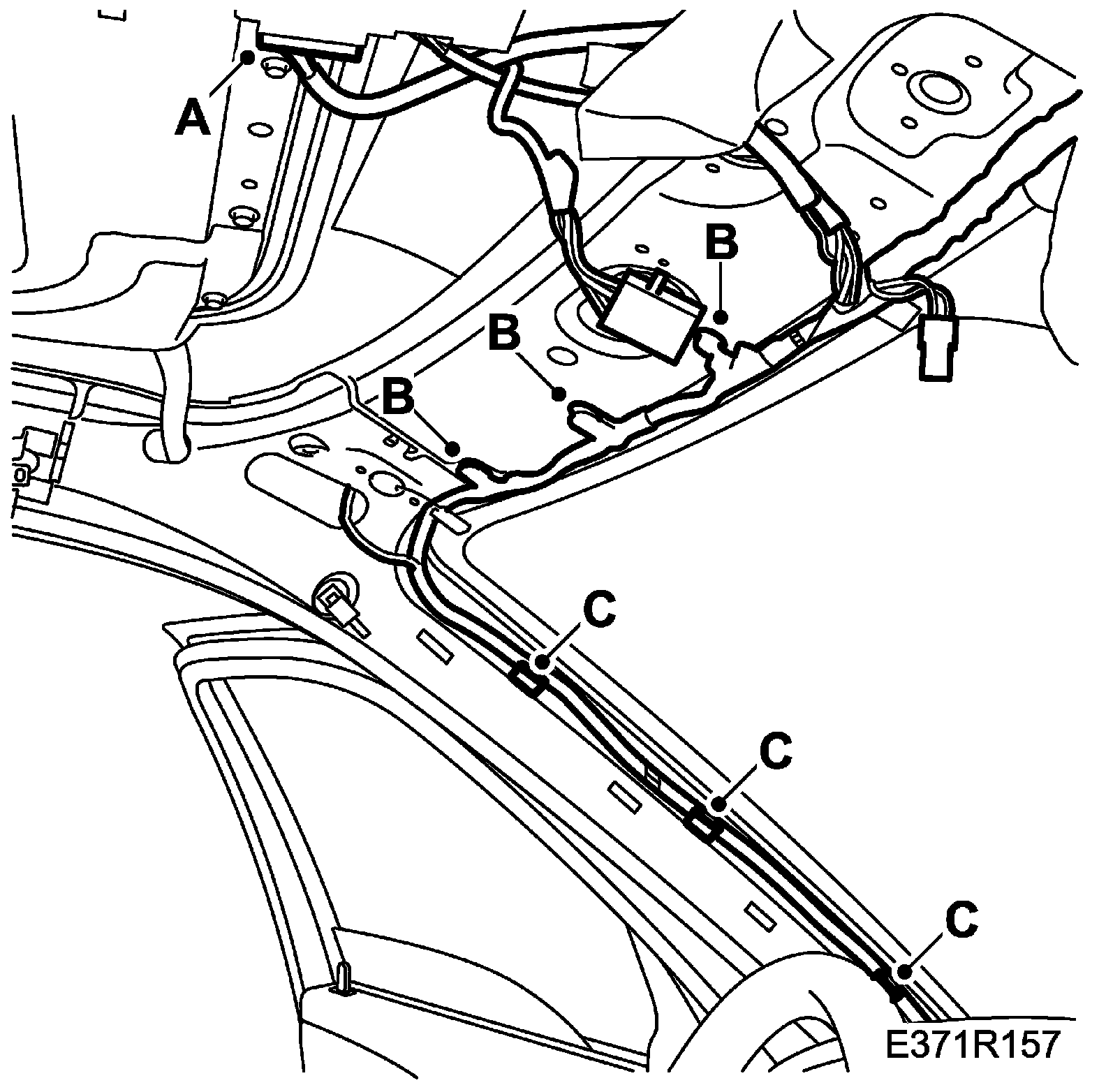 33. Fit the wiring harness to the left-hand A-pillar (C)
