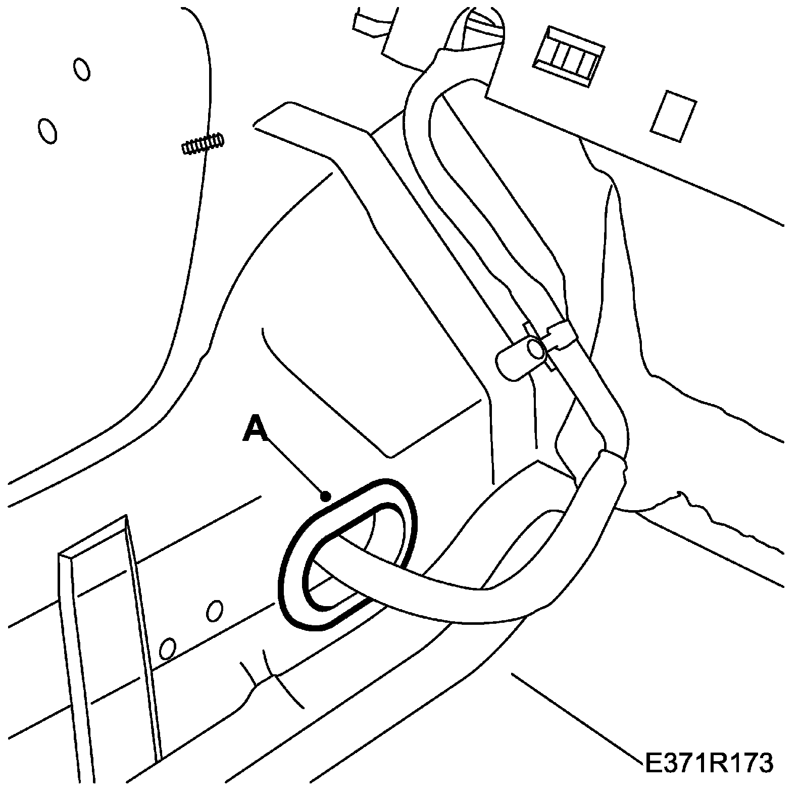 74. Detach the tank harness rubber grommet from the body and route the harness into the passenger compartment (A).