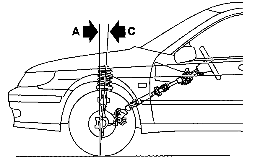 If the wheel leans outwards, the camber is said to be positive (+) and if it leans inwards the camber is said to be negative (-). Wheel camber on the Saab 9-5 is negative.