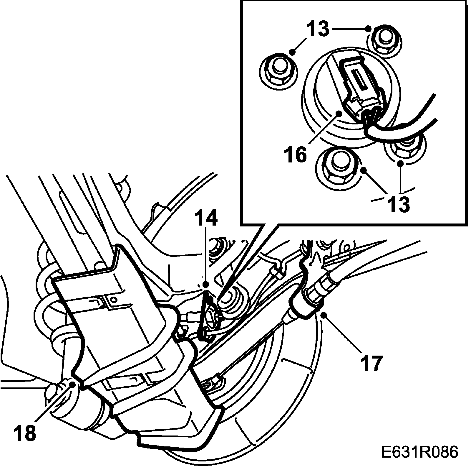 14. VIN X3025752-: Fit the mounting for the wheel sensor and the brake pipe.