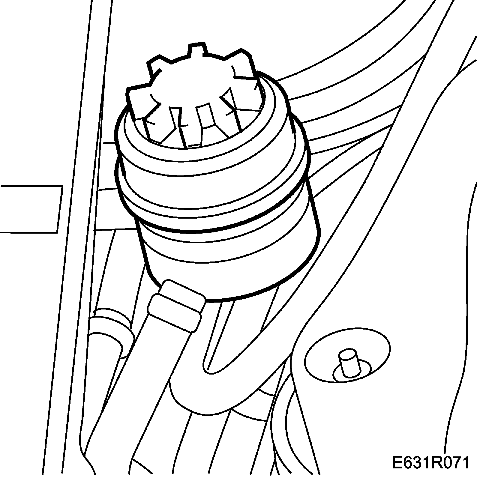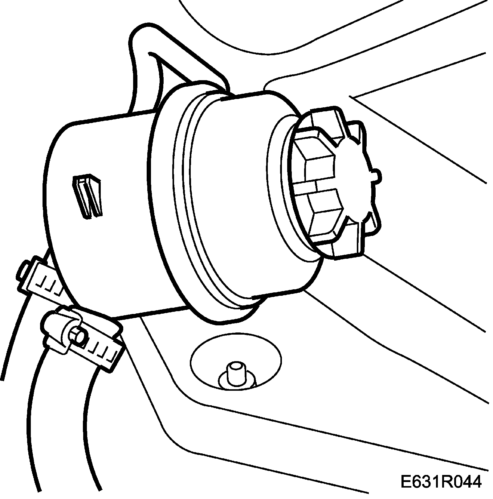 21. Connect the return hose to the power steering fluid reservoir and tighten the hose clip.