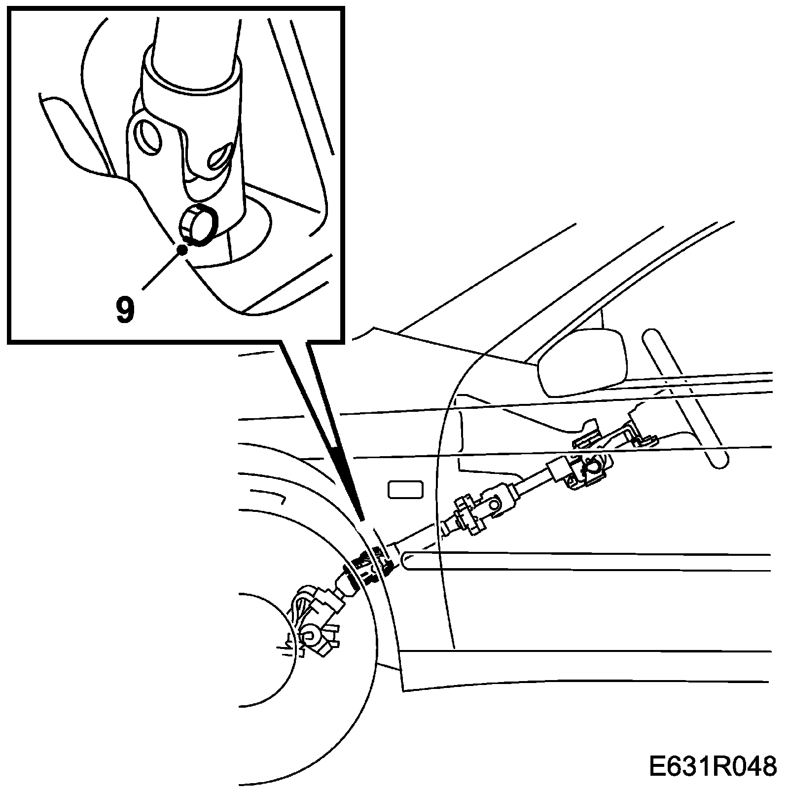 9. Remove the bolt securing the steering column shaft to the steering gear (accessible under the dashboard) and push the steering column shaft upwards, withdrawing it from the steering gear.
