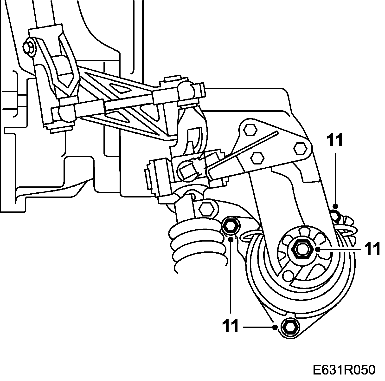 6. Fit the engine cushion in place and screw in the retaining bolts a few turns.