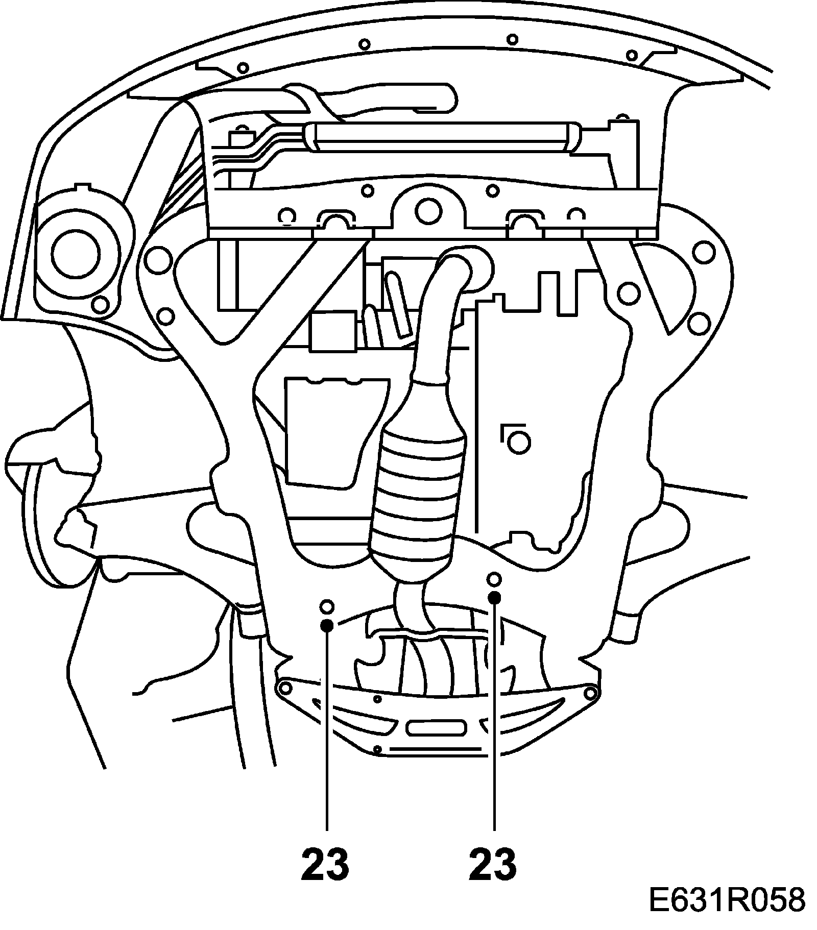7. Raise the subframe and tighten the center attachment point bolts.
