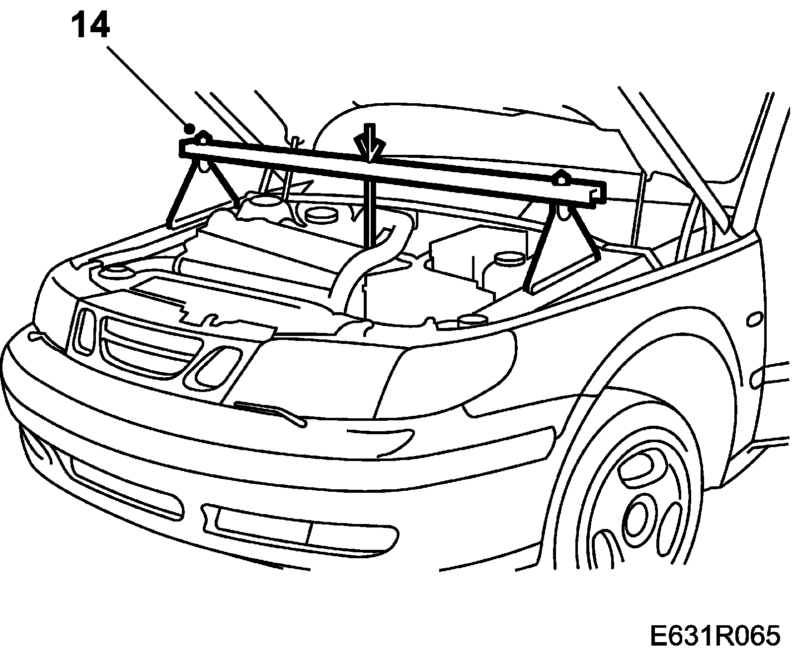 14. Lower the engine onto the rear engine cushion and remove the lifting beam.