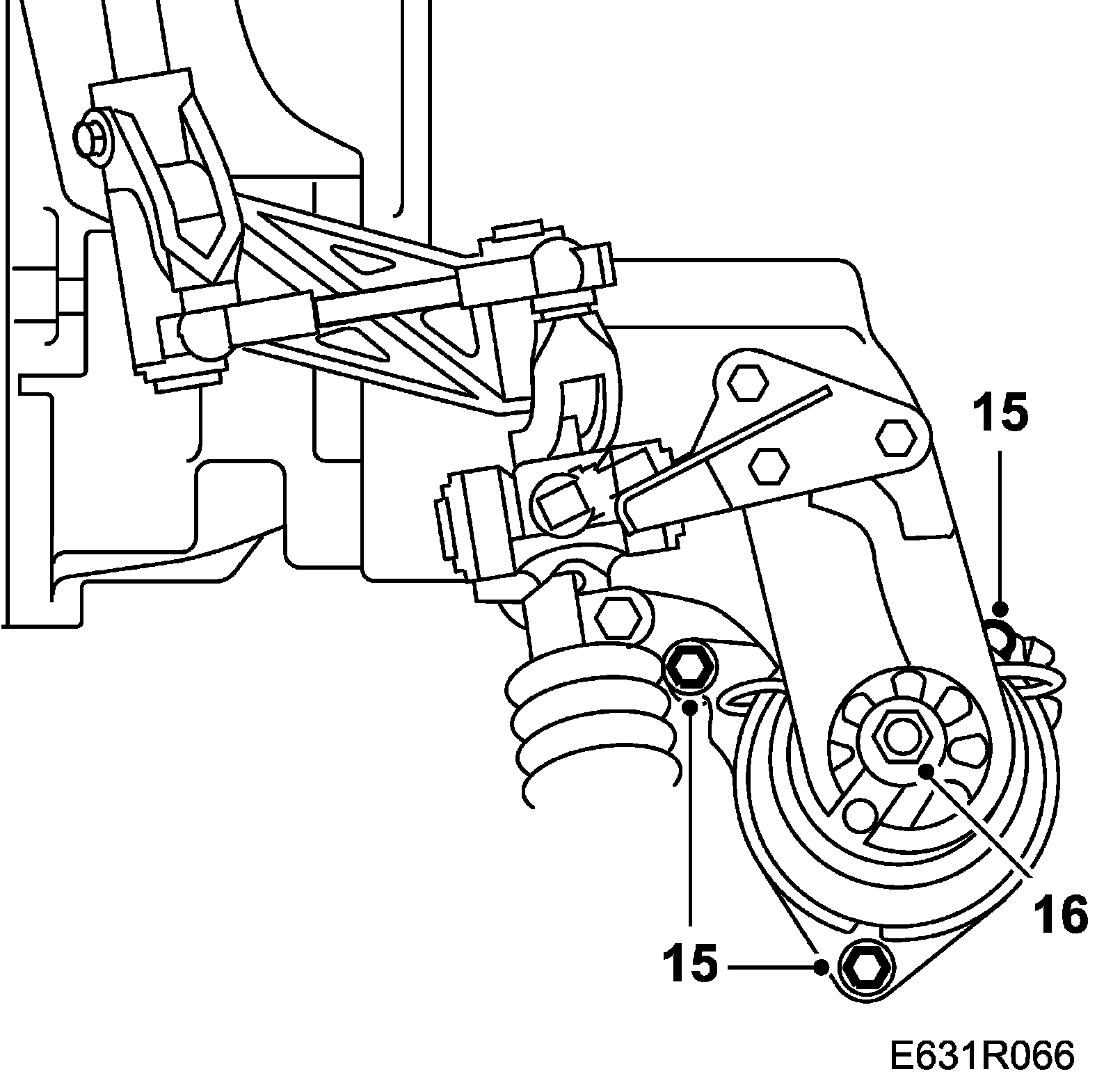 16. Tighten the bolt securing the rear engine cushion to the engine mounting.