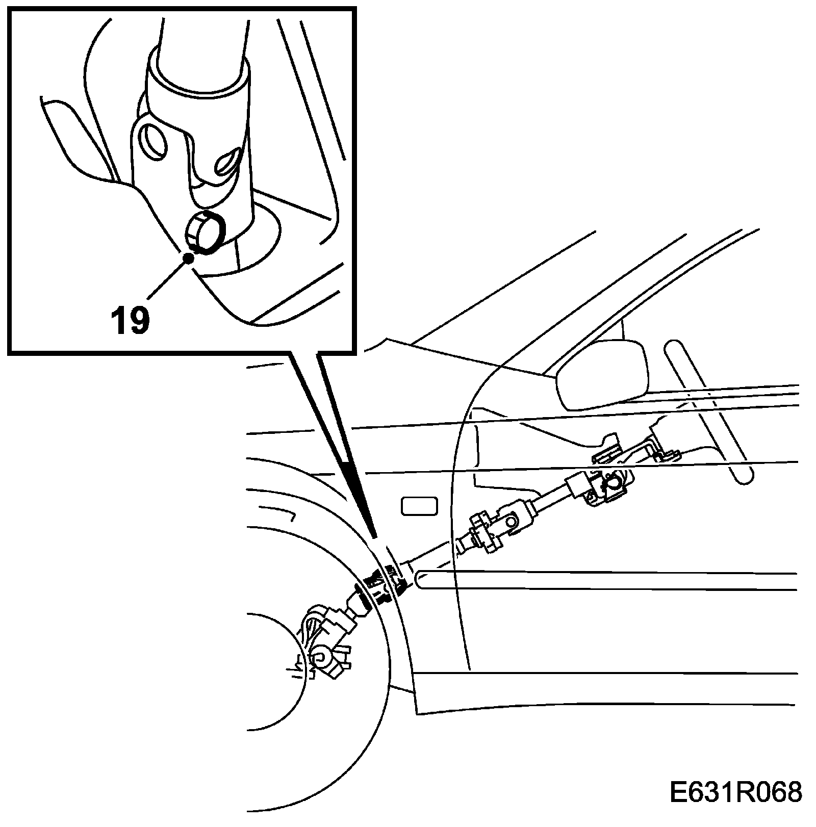 19. Align the steering column shaft with the steering gear and tighten the bolt securing them to each other (accessible under the dashboard). Make sure that the steering gear bolt enters the milled groove on the pinion shaft.