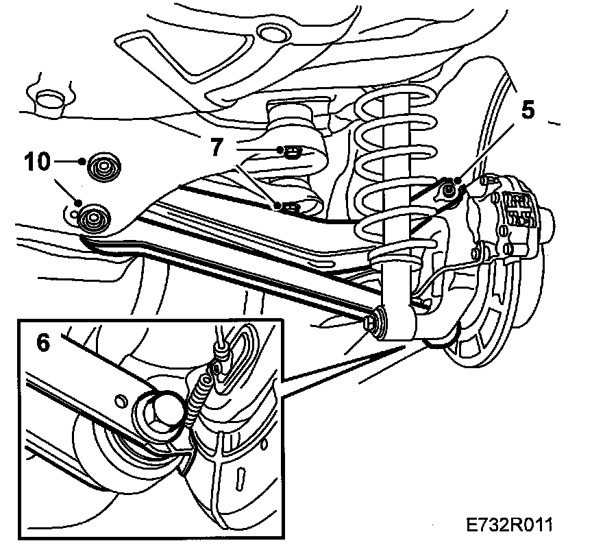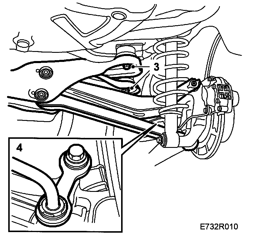 WARNING: The transverse link retaining bolts with protective sleeves must be refitted in the same way as they were when removed. They protect the fuel tank and fuel filler pipe in the event of a collision.