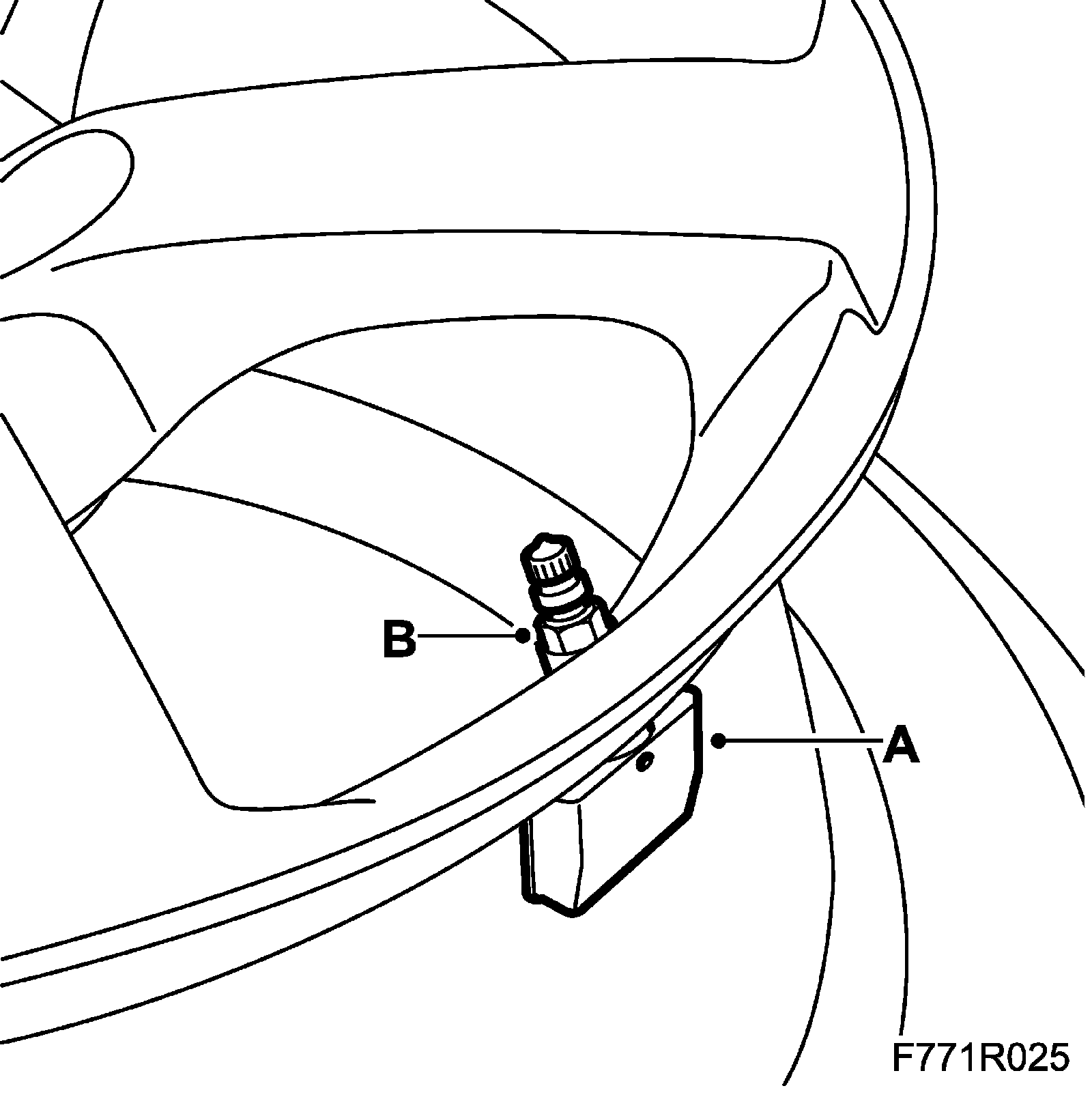 3. Remove the sensor (A) by undoing the nut (B), then lift out the sensor.