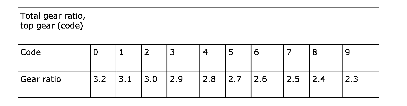 7 Overall ratio, top gear (code, see table below)