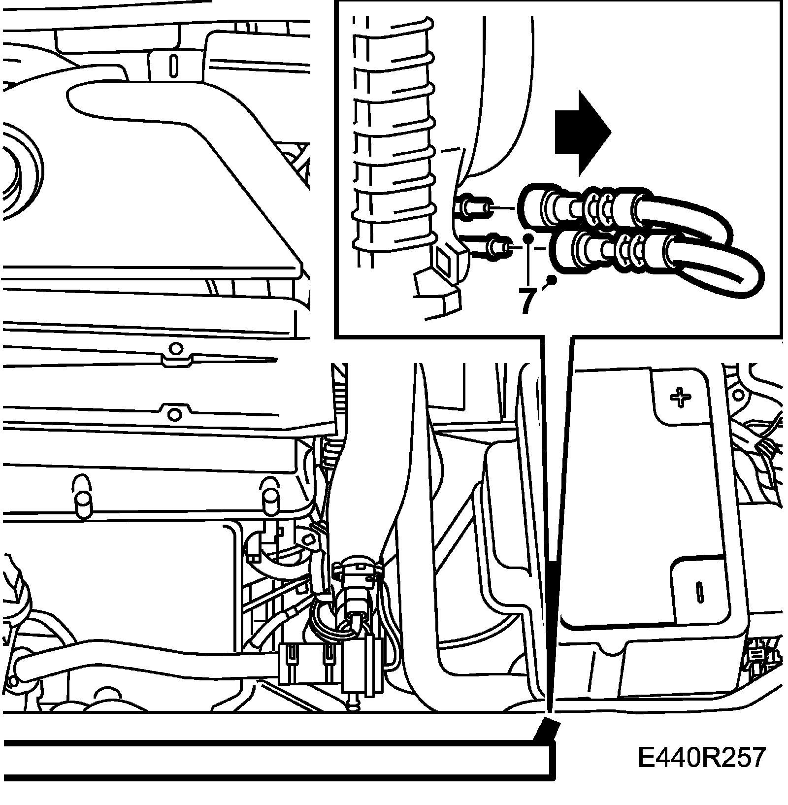 7. Separate the hose quick-release coupling with 83 95 261 Tool, fuel line. Remove the hose.