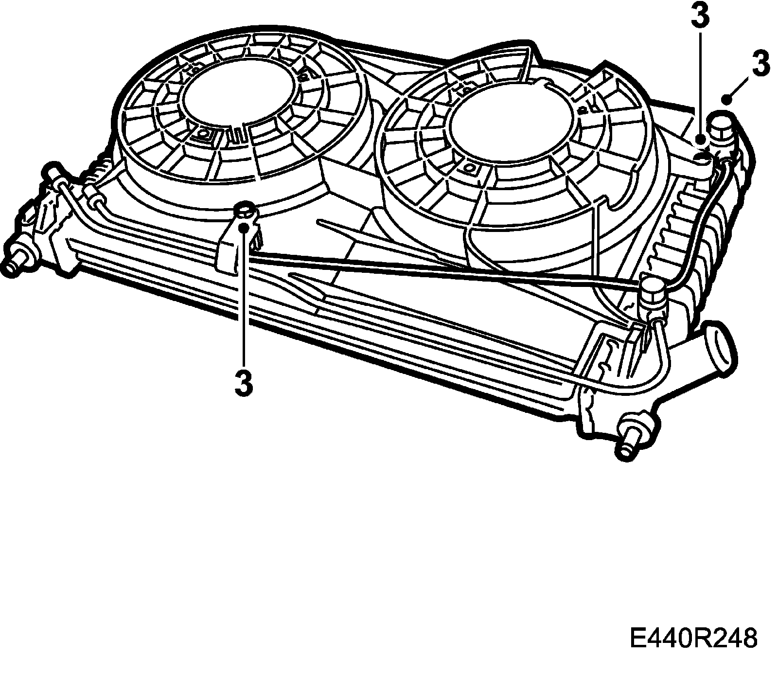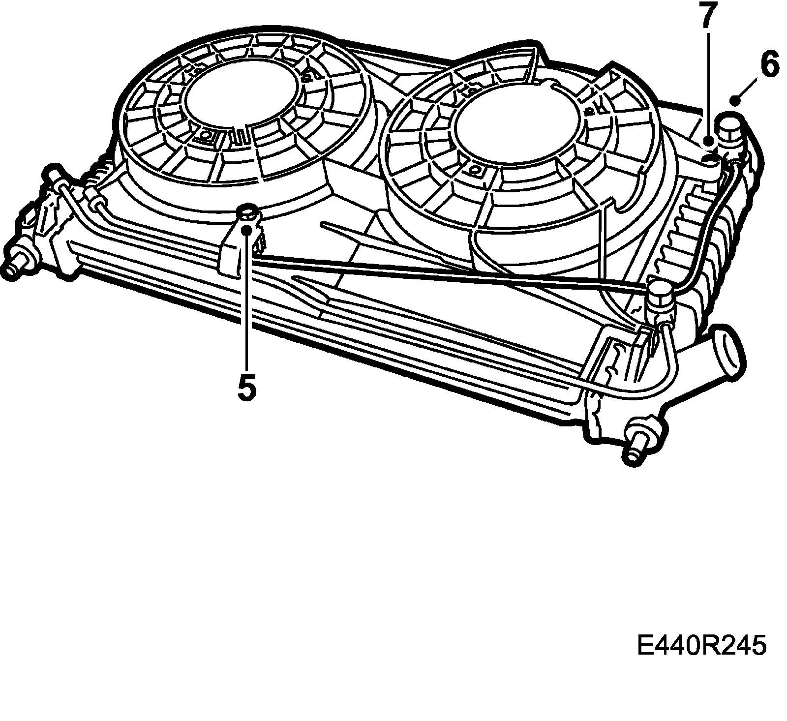 7. Unplug the connectors from the radiator fans. Undo the clip securing the hose to the expansion tank. Remove the screws and lift out the complete fan cowling.