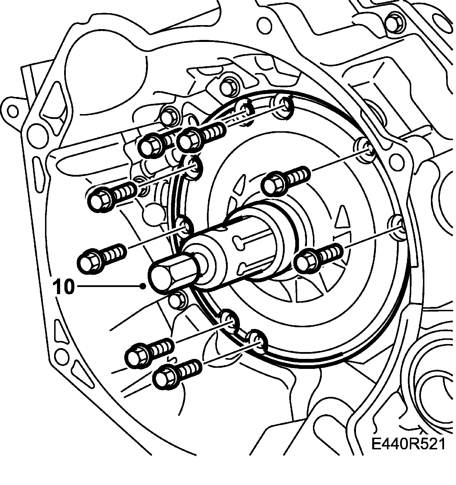 10. Align the plates using a screwdriver and fit the output shaft complete with clutch unit C3. Make sure that the shaft falls into place at the same height as the intermediate gear. Check that the shaft and gear rotate freely. Fit a bolt to the shaft to rotate it.