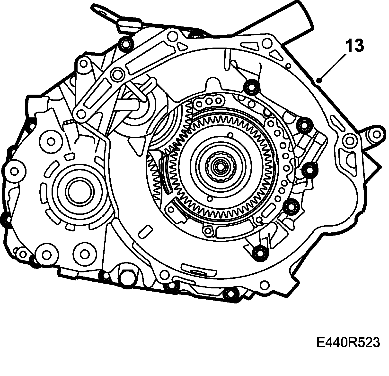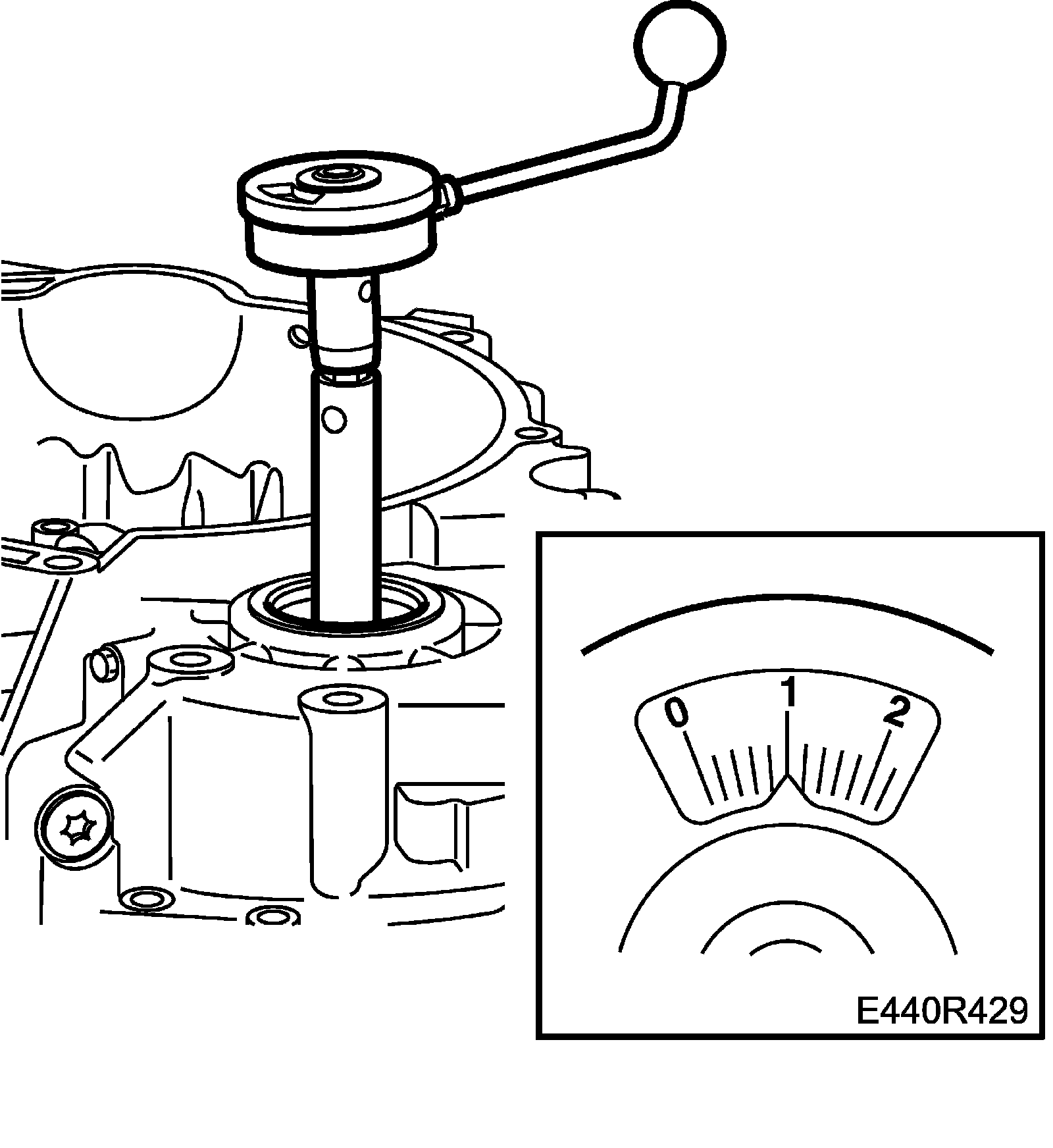 7. Fit the differential and fit the torque converter housing. Only fit every other bolt. Fit a 87 92 483 Torque wrench and 87 91 337 Driver, measuring differential bearing torque to the differential housing (file down the key slightly if the tool does not fit the differential shaft). Turn until the reading is stable.