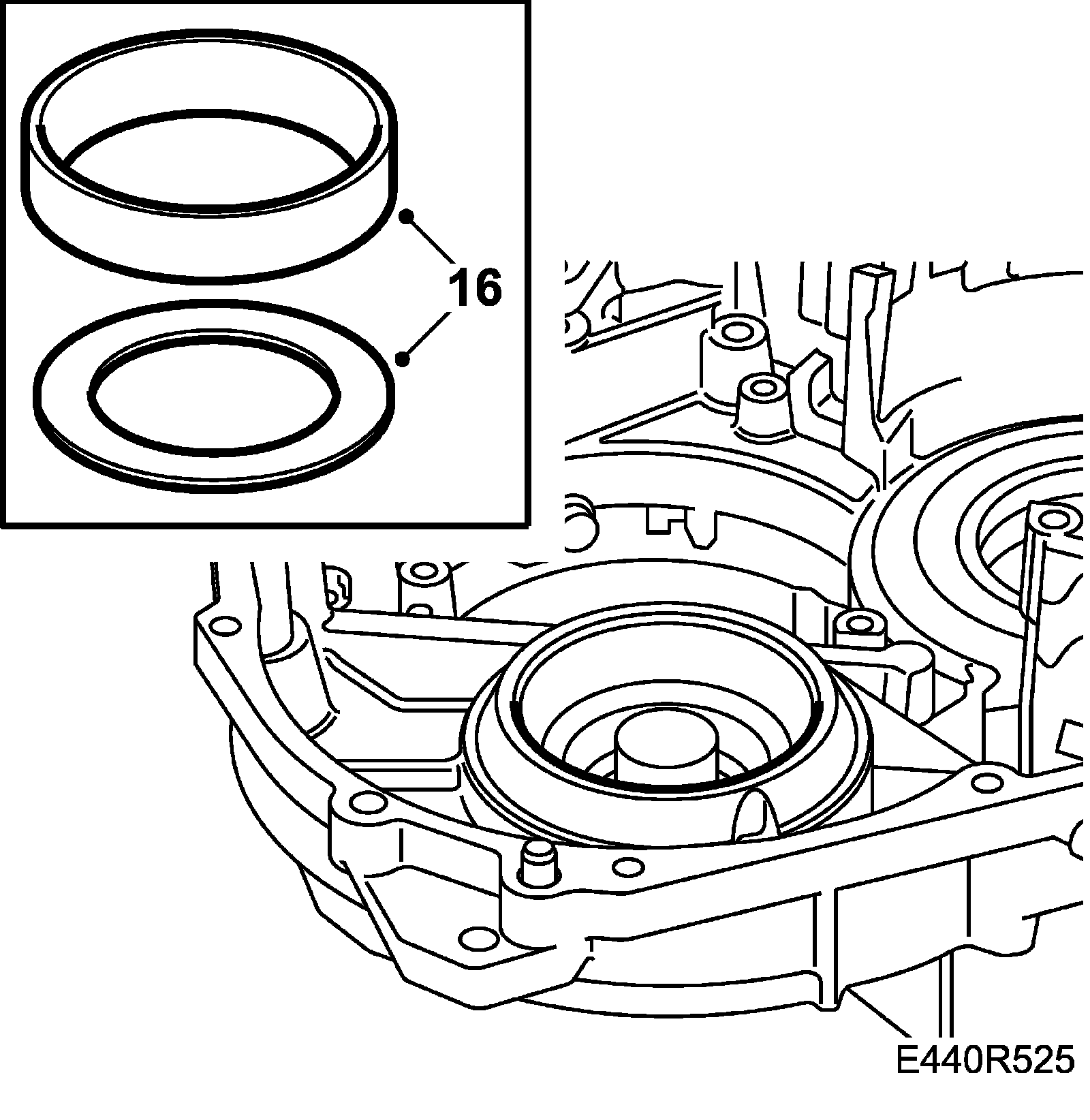 2. Heat the bearing seat for the differential bearing race in the torque converter housing. Fit the bearing race. Make sure the bearing race is all the way home.