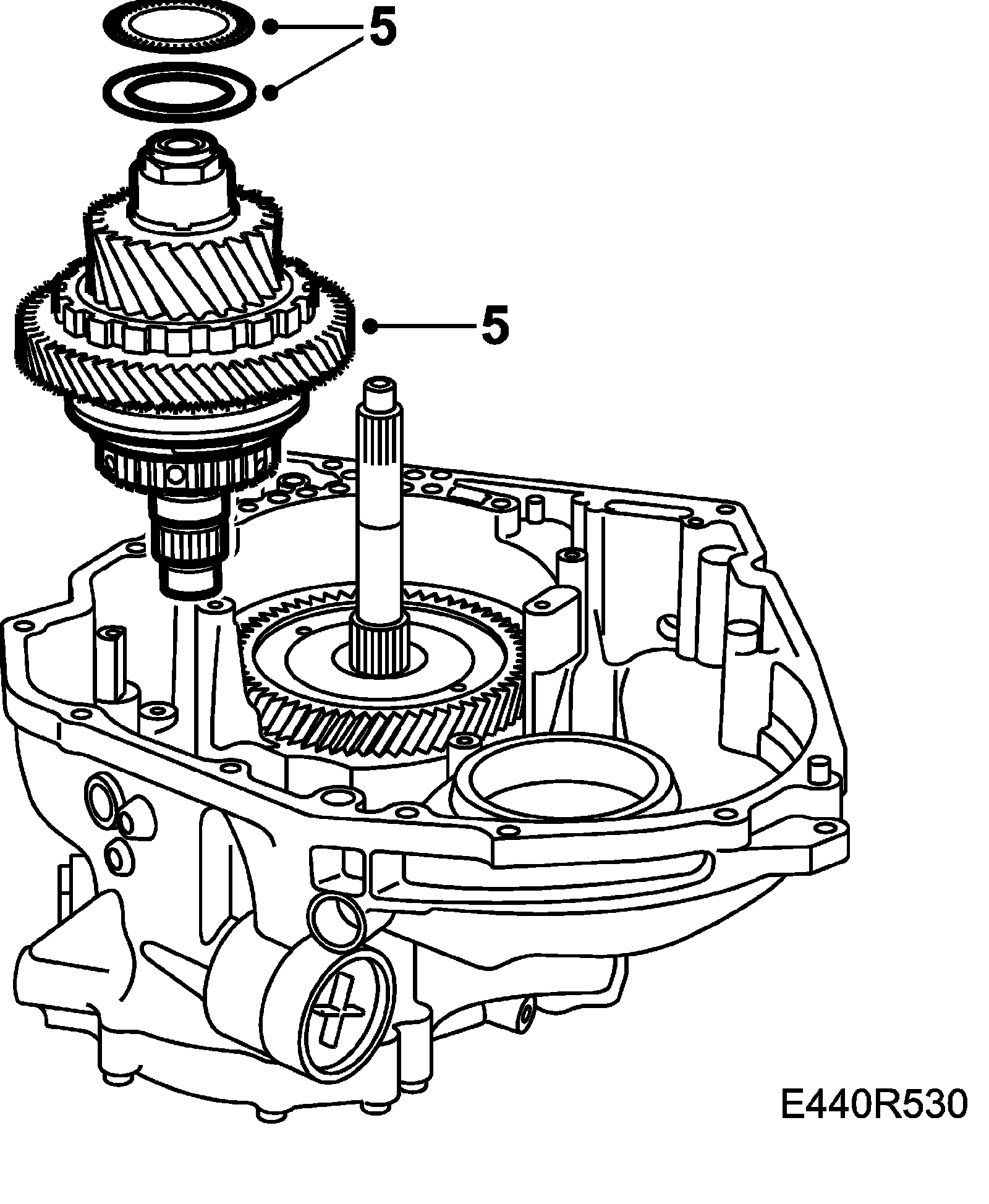 5. Lift out the output shaft complete with thrust bearing and bearing race.