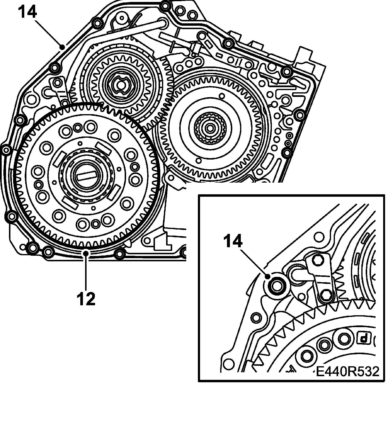 15. Fit a new seal into the gear case and apply an approx. 1 mm thick bead of 87 81 841 Silicone flange sealant to the gear case as illustrated. Fit the torque converter housing.