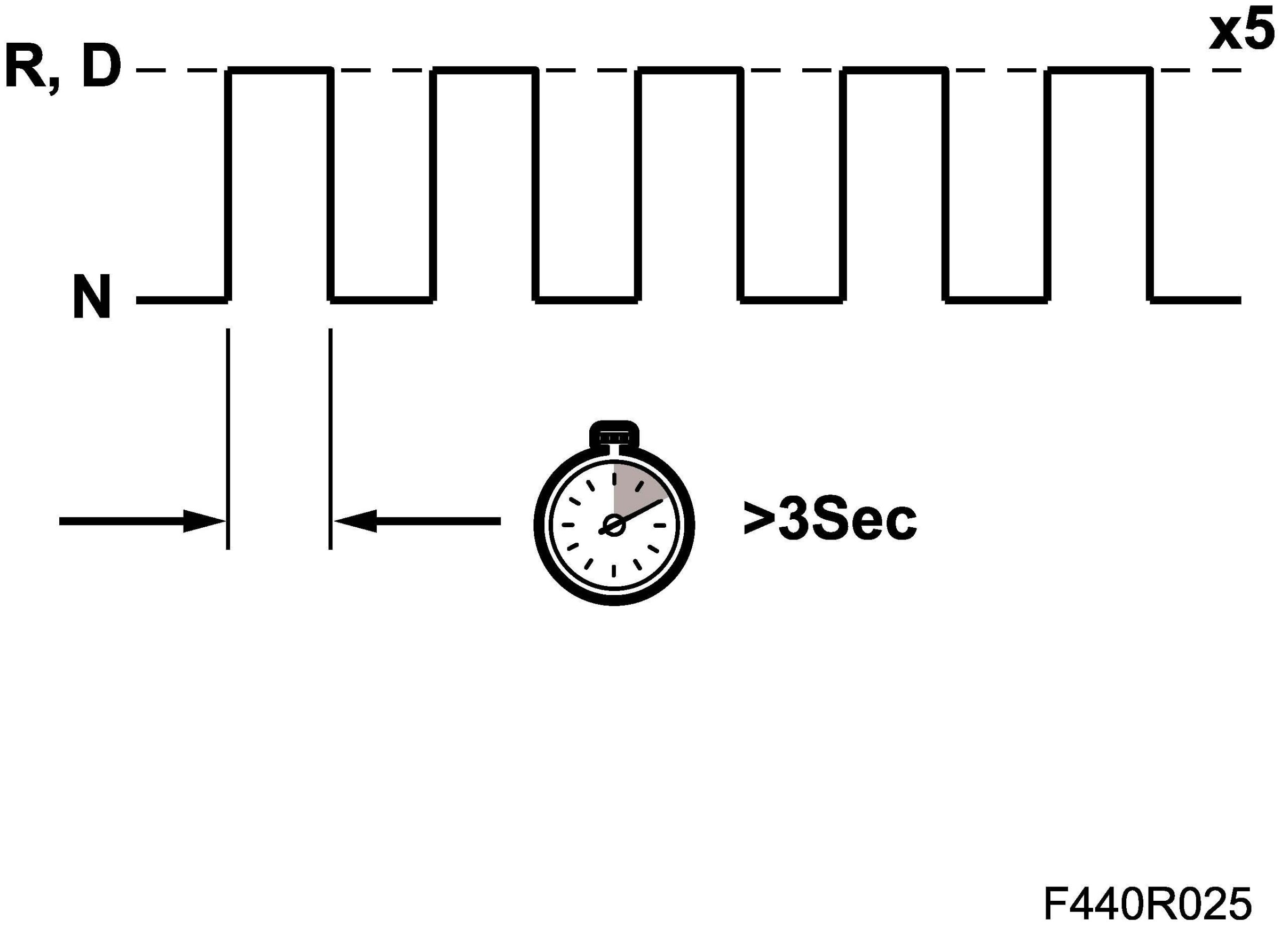 3. Adaptation for shifting N-D and N-R is made with the hand brake applied. If the procedure is carried out in the workshop, connect the exhaust evacuation system, start the car and run at idling speed. Shift from N to R. Allow R to be engaged for more than three seconds, then shift back to N. Repeat the procedure 5 times. Next shift from N to D in the same way as above, repeat 5 times.