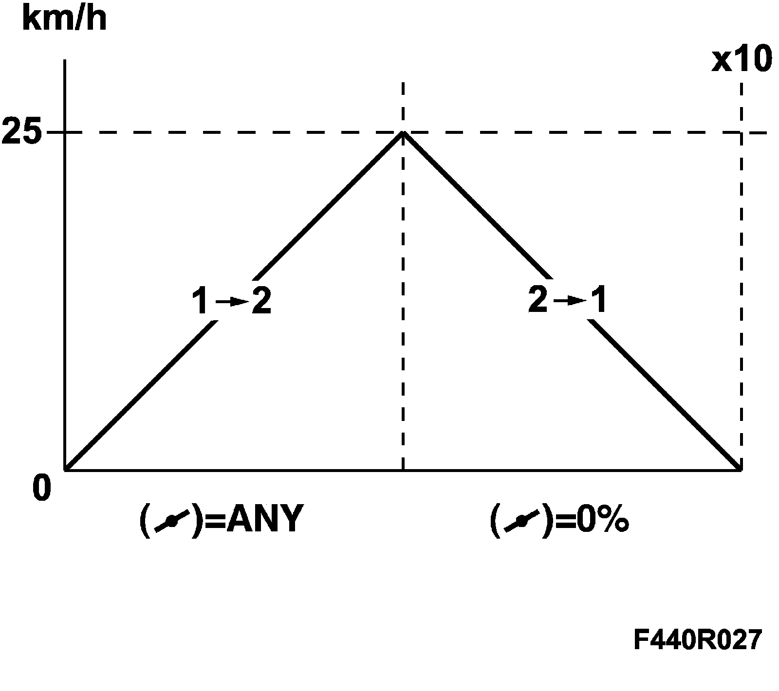5. Adaptation for manual shifting from gear 2 - 1 is carried out by driving. Engage position 3 or M2 (cars with Sentronic) using the selector lever. Accelerate up to 25 km/h. Engage position L or M1 (cars with Sentronic) and brake gently until the car stops. Repeat the procedure 10 times.