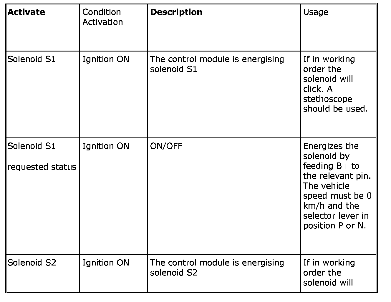 "Activate" menuNote: When a system function is activated with the diagnostics tool, the control module executes a command which is not normal from a functional point of view. In activation mode the diagnostics tool checks the control module and the activation command should therefore be used with discrimination. An activated function will always be reset when you leave the activation mode and continue in the diagnostics tool's menu.