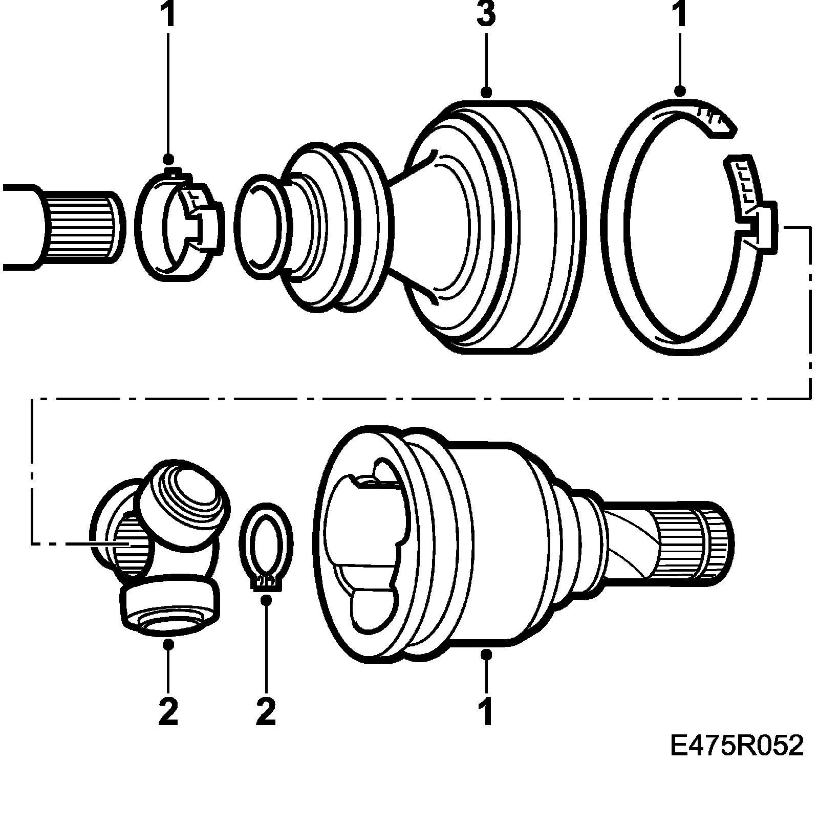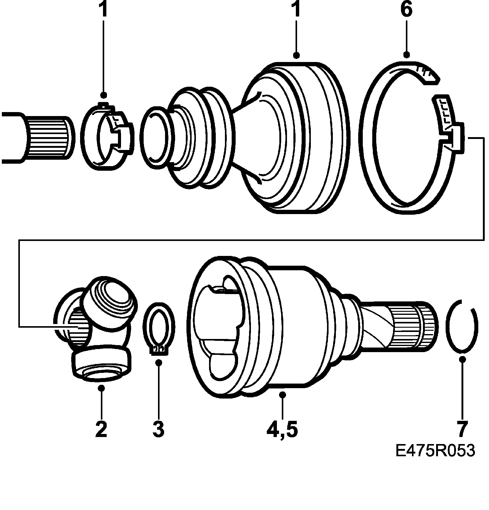 1. Clean the outside of the universal joint. Remove the gaiter clips. Remove the plate edge and lift off the tripod housing. The plate does not need to be refitted (only for production purposes).