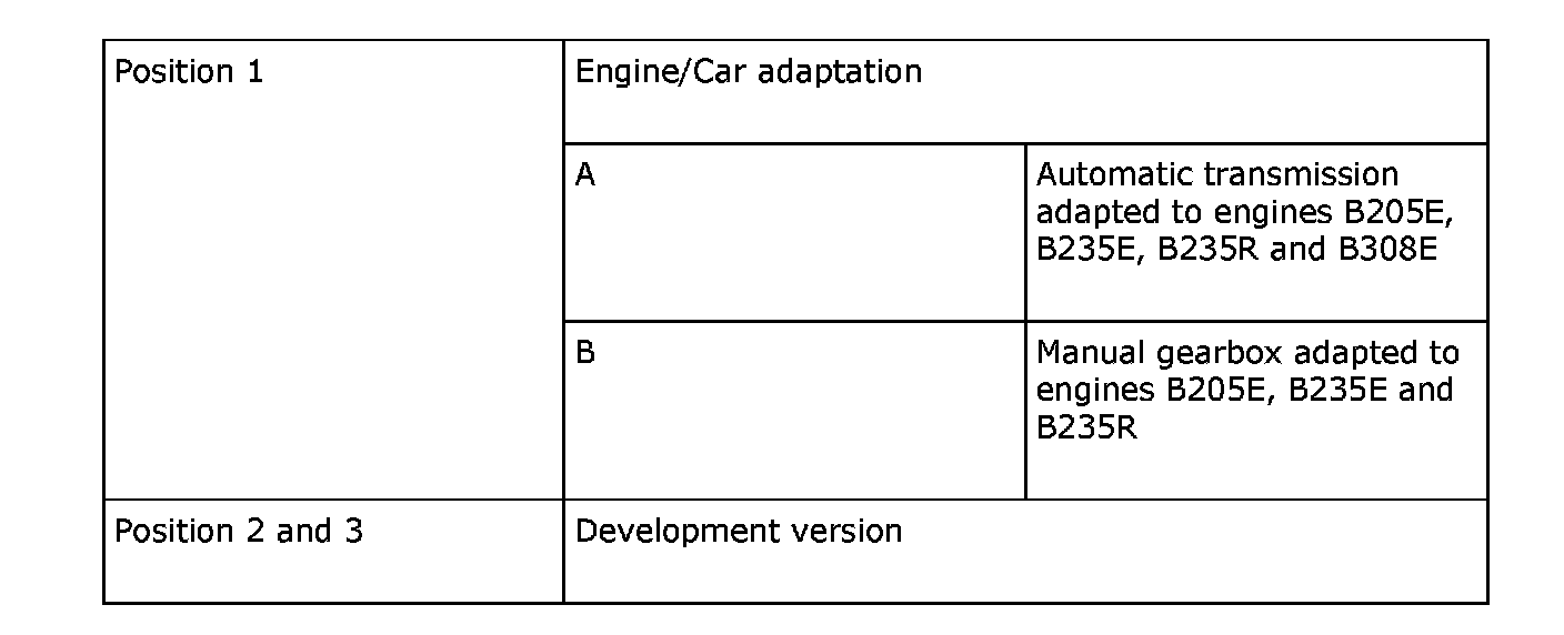 Manual gearboxes have a 6-character designation which starts with a letter according to which line the gearbox was fitted on. Each number series consists of 5 digits.