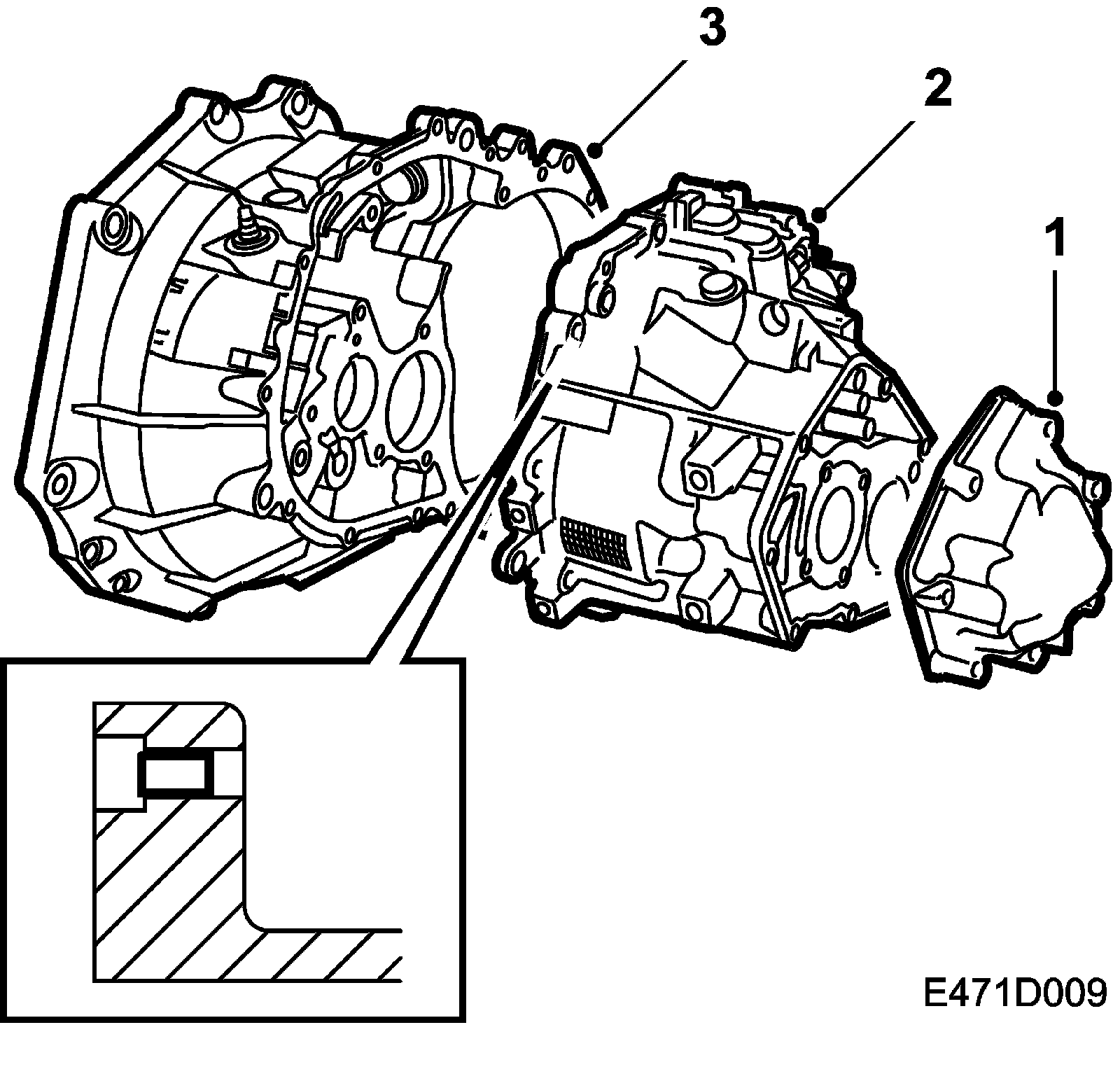 The gearbox has only two pairs of mating faces. The mating faces between the clutch housing and the gear case are sealed with sealant and the mating faces between the gear case and the end cover are sealed with a gasket. Ventilation and breathing are via a "labyrinth" in the upper part of the gear case which also houses a filter (sintered compact) to keep out dirt and moisture.