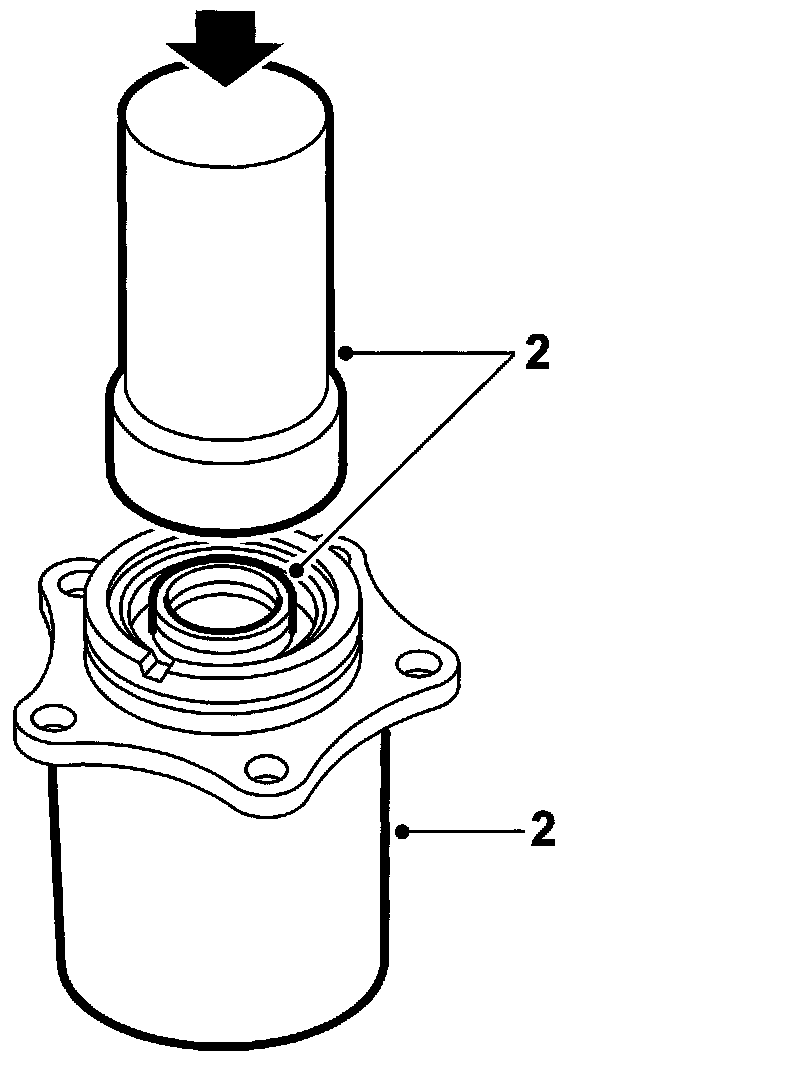 1. Press on the seal ring with drift 87 92 657 until it stops. Use tool 87 92 236 as support.