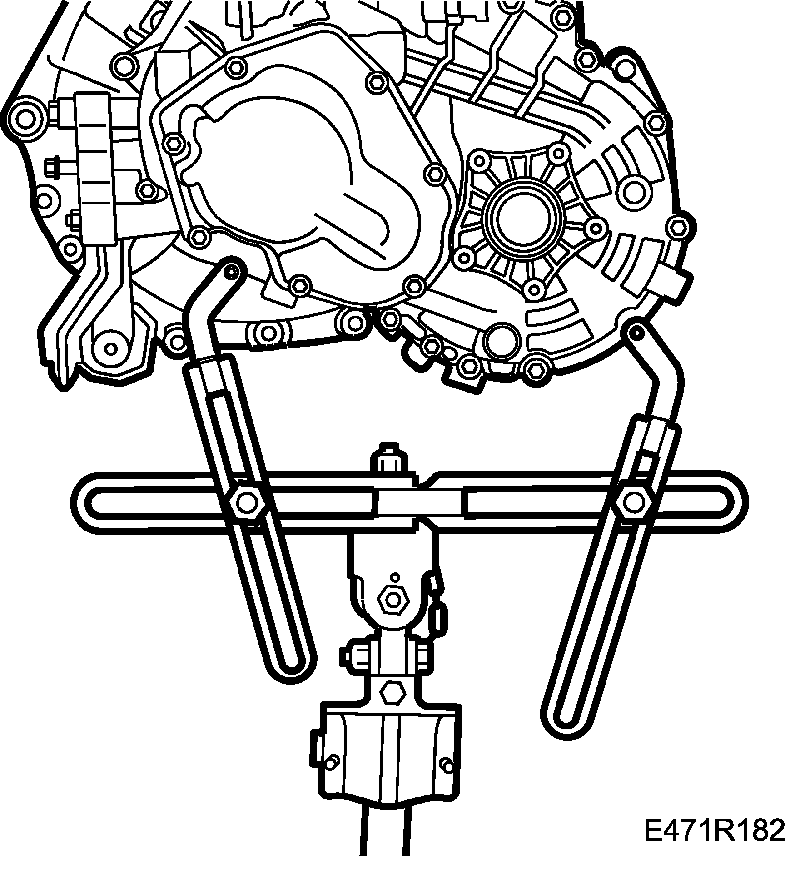 11. Remove the lifting tool from the gearbox and lower the jack.