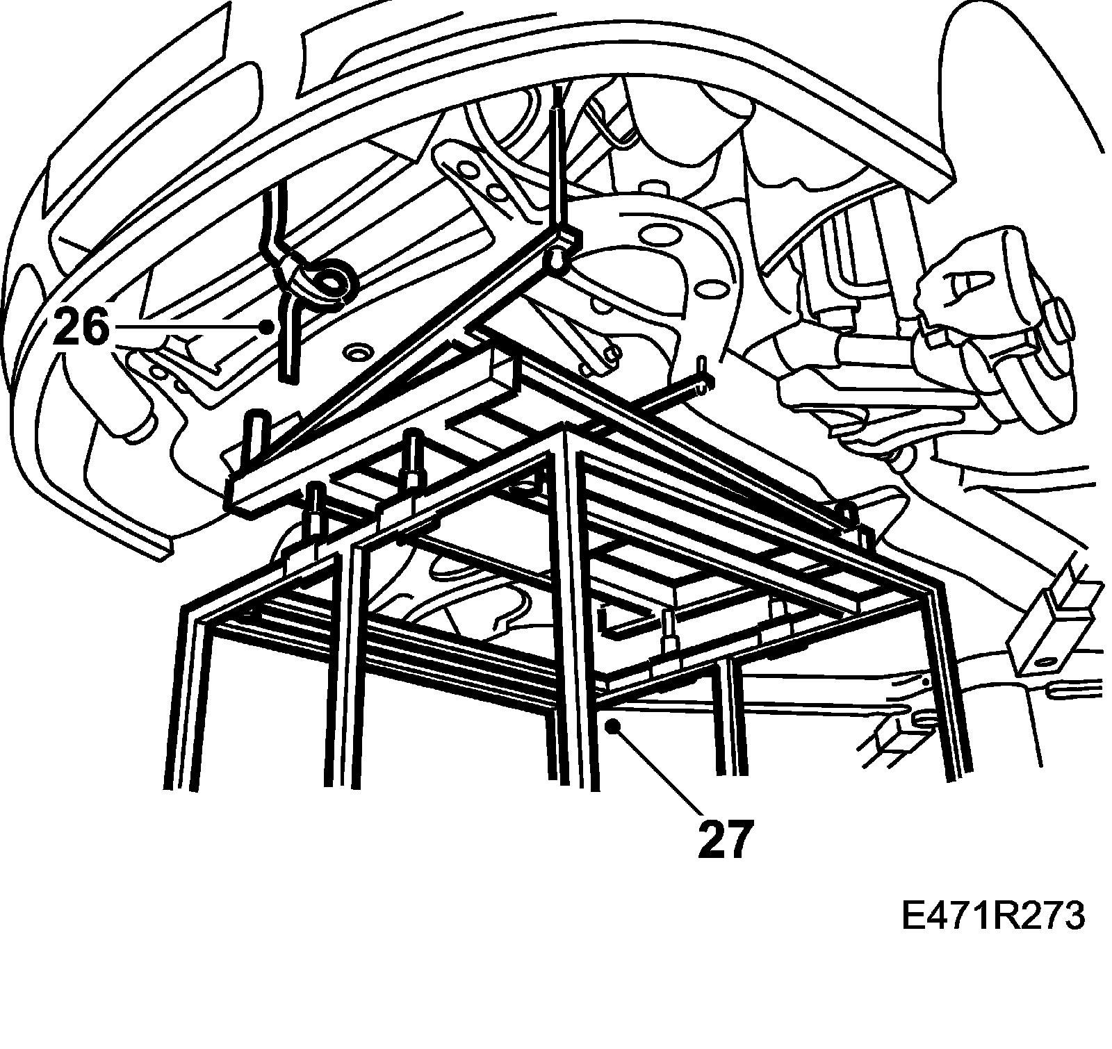 27. Raise the car and move the trolley lift with subframe below the car.