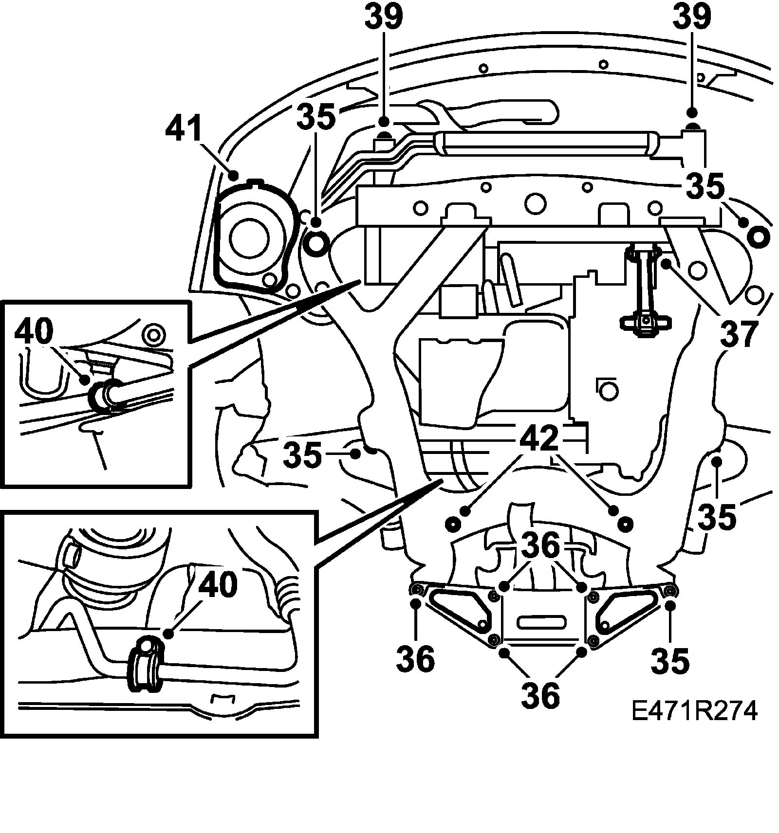 Engine pad - body 60 Nm (45 lbf ft)