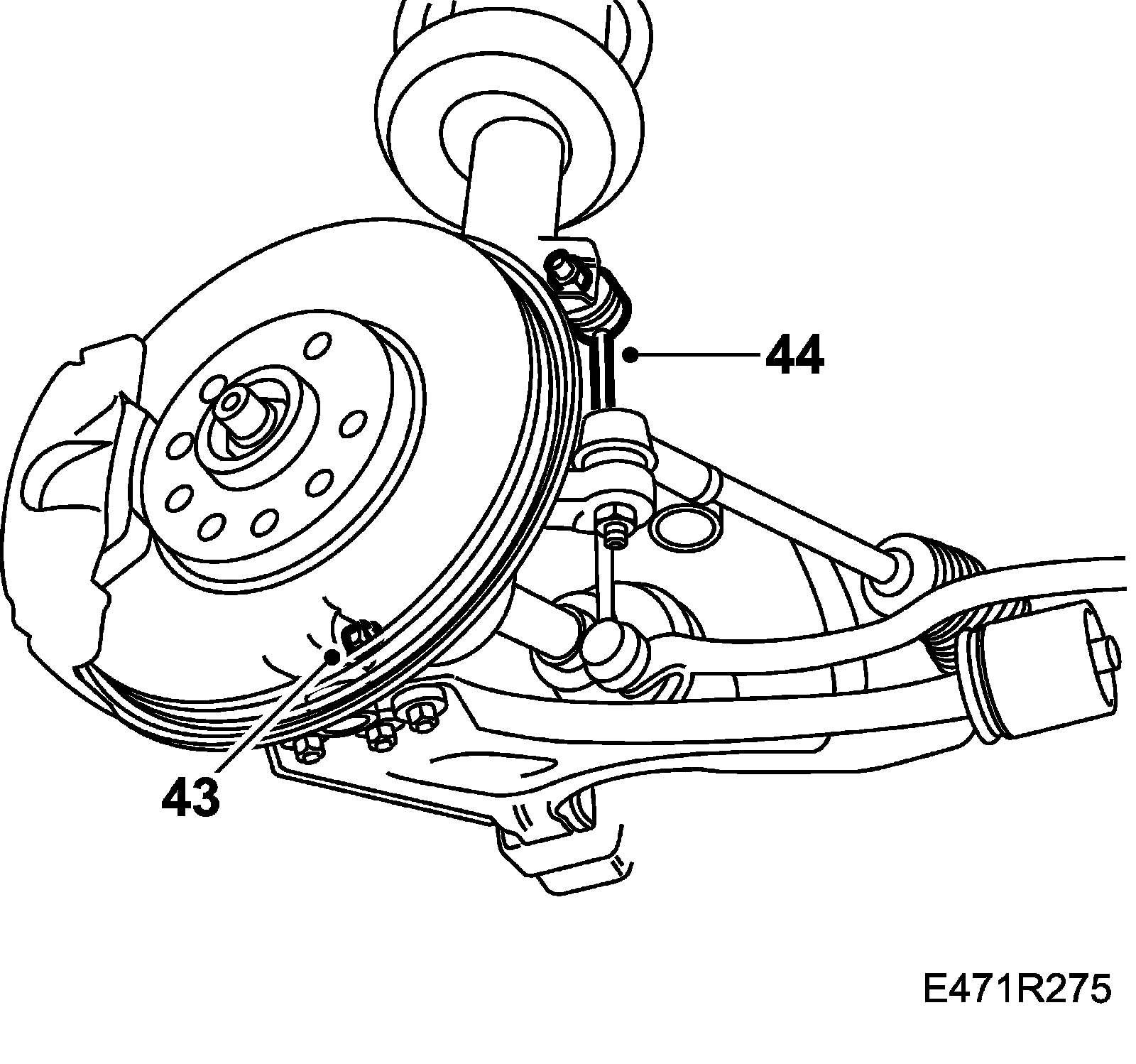 44. Fit the anti-roll bar stays. Hold in place with a thin, open-ended 17 mm wrench or a hold the hex plug with a socket.