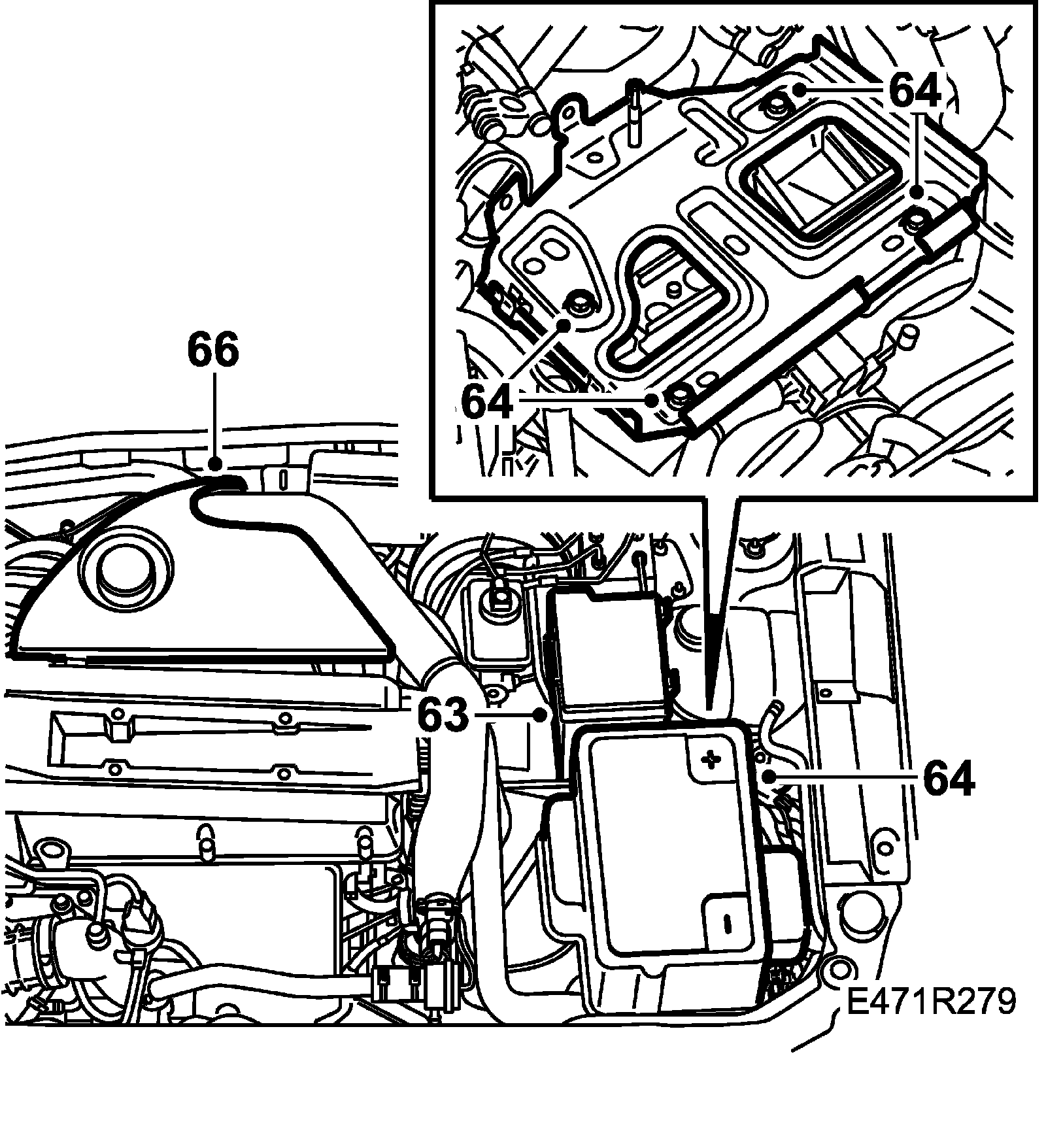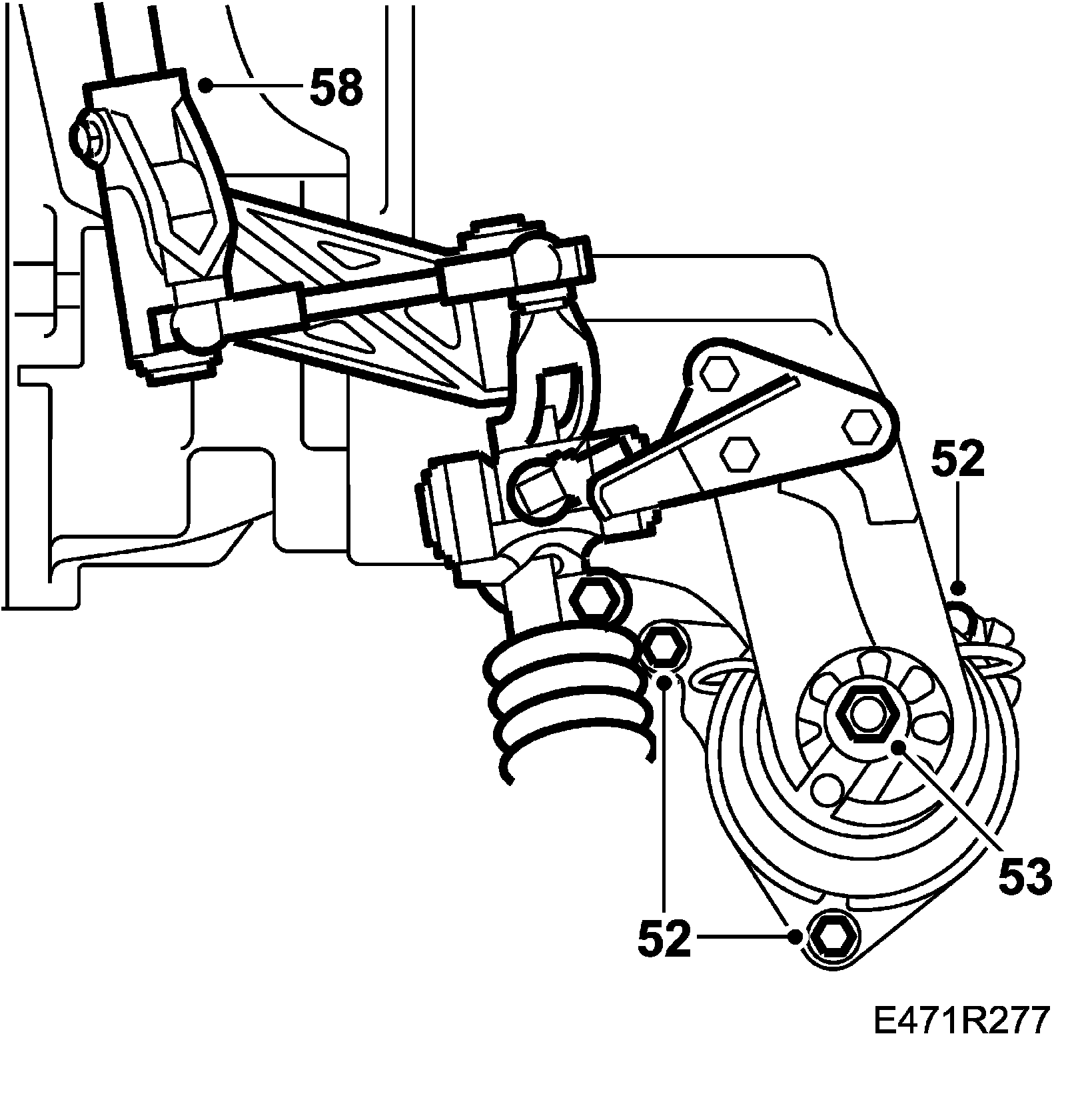 52. Shake the power train to prevent stresses in the engine pads. Tighten the bolts to the rear engine pad from the engine bay side, starting with the rear bolt.