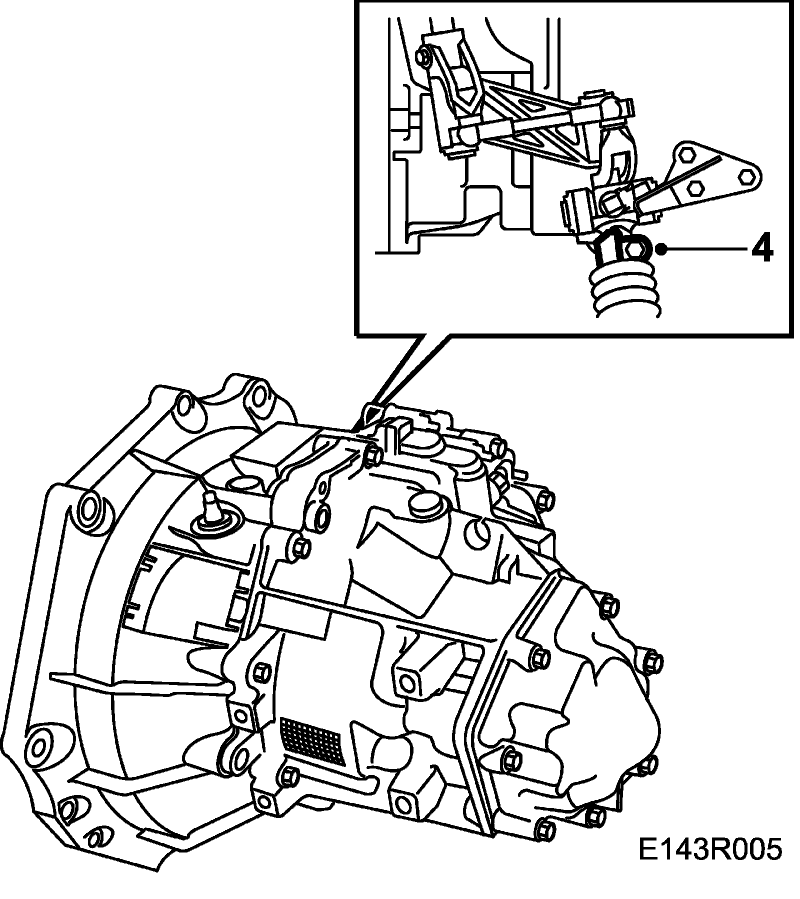 2. Remove the plastic plug from the gearbox and insert 87 92 335 Locking pin so that the 4th gear is locked.