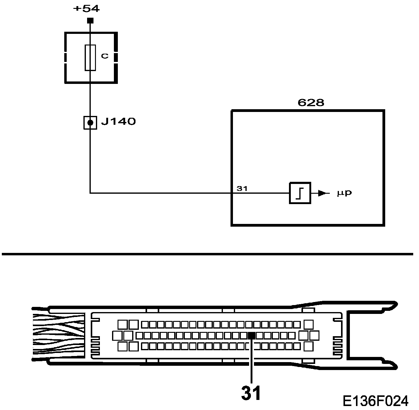 If there is no +54 circuit current when +15 circuit current is present, the DICE control module thinks that the ignition switch is in the START position. DICE then disconnects certain items of electrical equipment to reduce the load on the car battery. If there is no +54 circuit current when +15 circuit current is present for more than 20 seconds, the fault is probably in the car's electrical system as the car starts in less than 20 seconds.