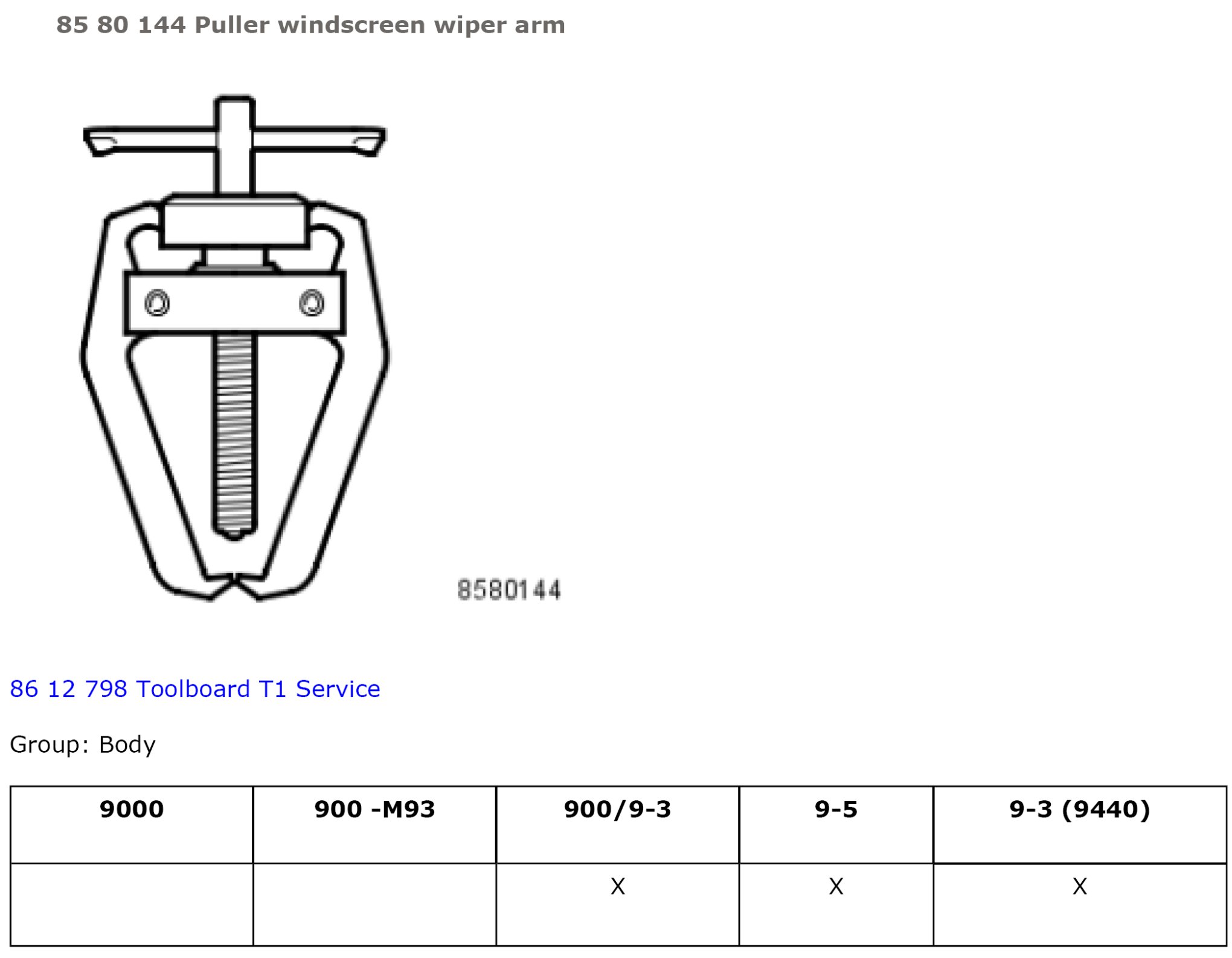 85 80 144 Puller Windscreen Wiper Arm: