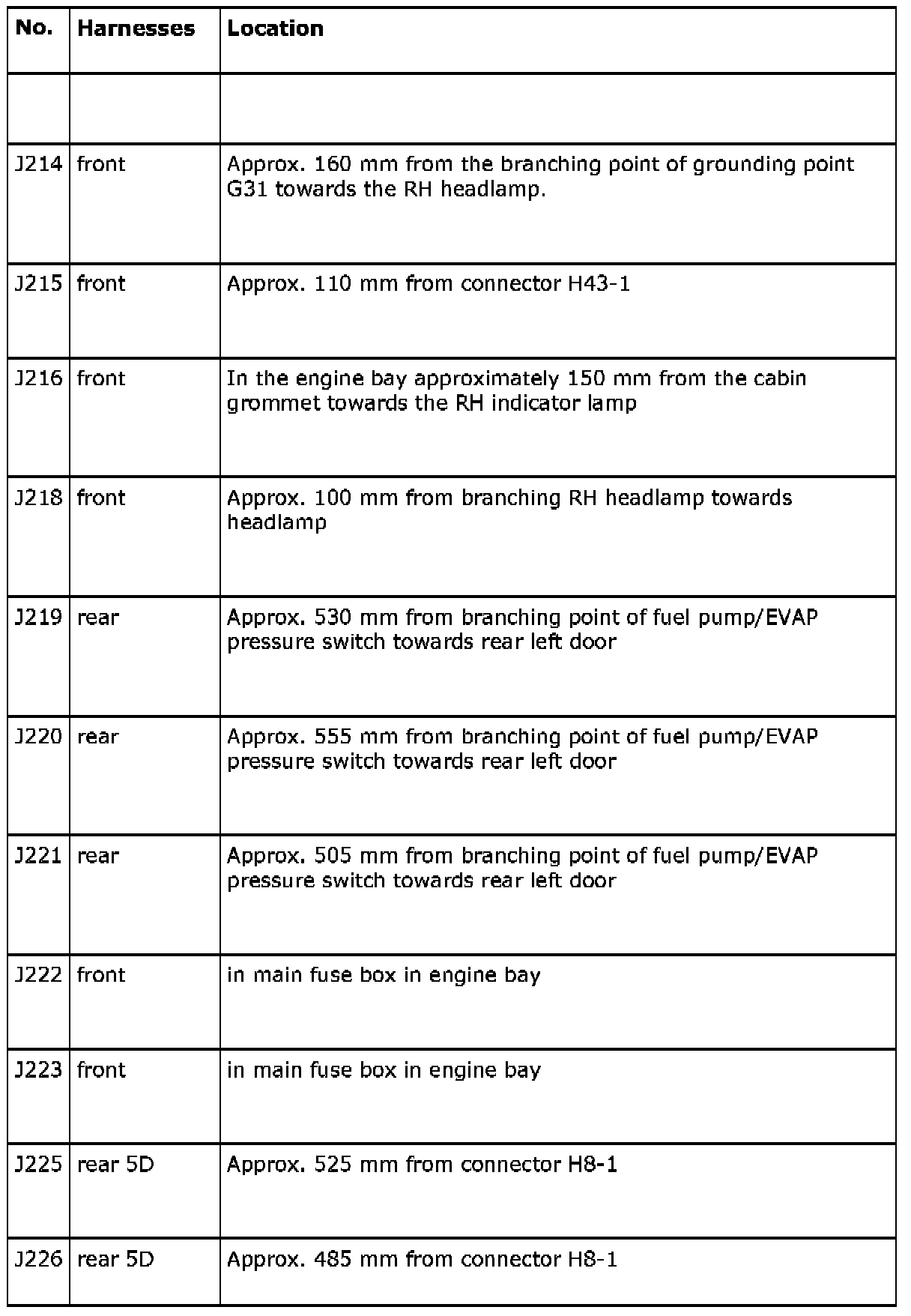 Crimp Connection J223, Front Wiring Harness