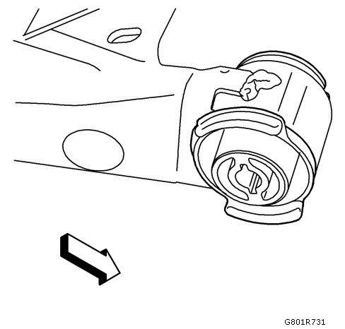 2. NOTE: The bushing can be damaged if it is pressed to deep. The bushing should be pressed so that the flange on the bushing is resting on the rear suspension support.