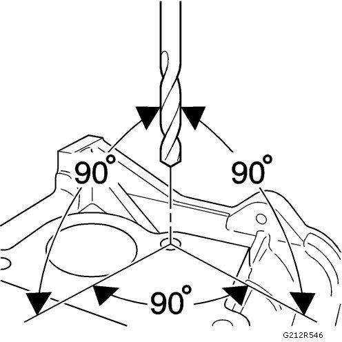 It is critical that the drilling, counterboring and tapping of the hole to be repaired follows the same centerline as the original hole.