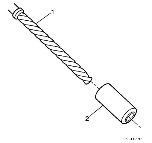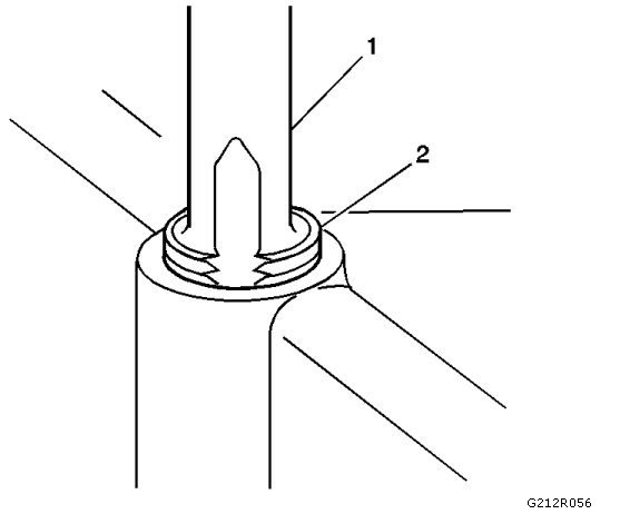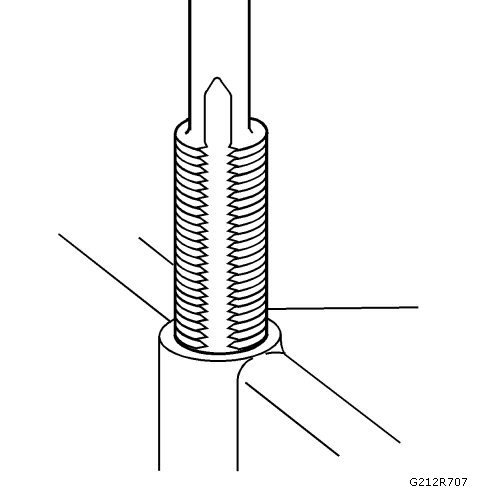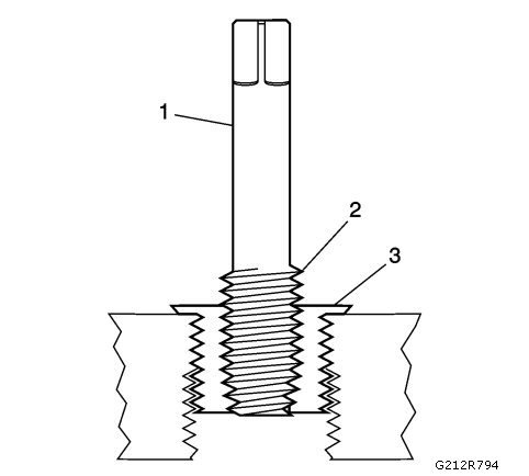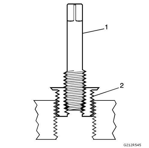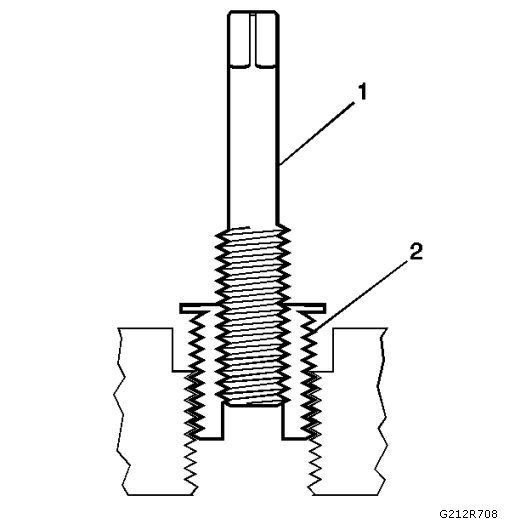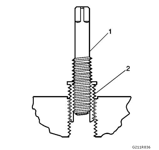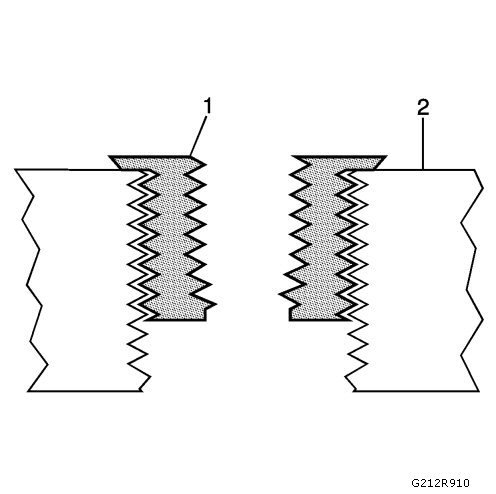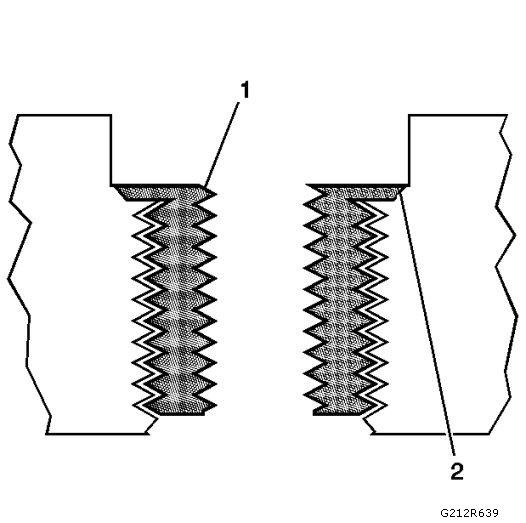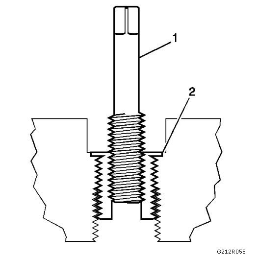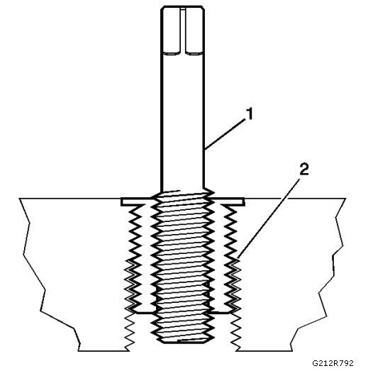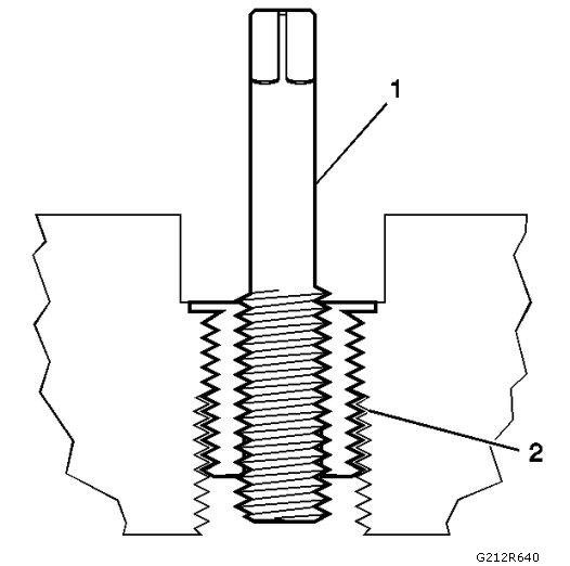14. Inspect the insert (1) for proper installation (2) into the tapped hole.