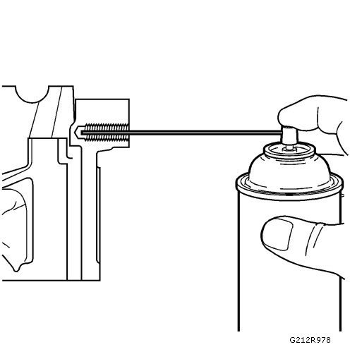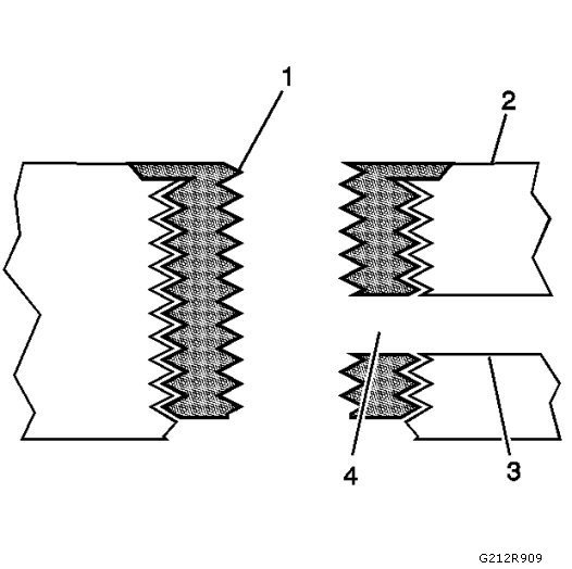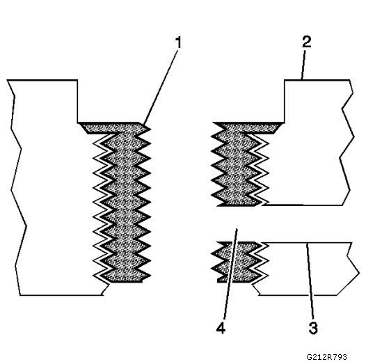 6. Apply threadlock sealant, EN 42385-109, LOCTITE 277(R) or equivalent (1) to the insert OD threads (2).