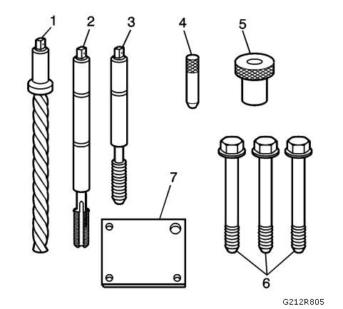 The cylinder-head bolt hole thread-repair tools are in the kits EN 42385-2000 insert kit and EN 42385-700 kit. The cylinder head bolt hole thread repair components consist of the following: