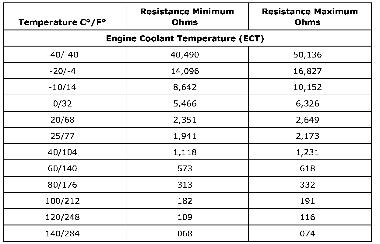 Temperature Versus Resistance - Engine Coolant Temperature Sensor