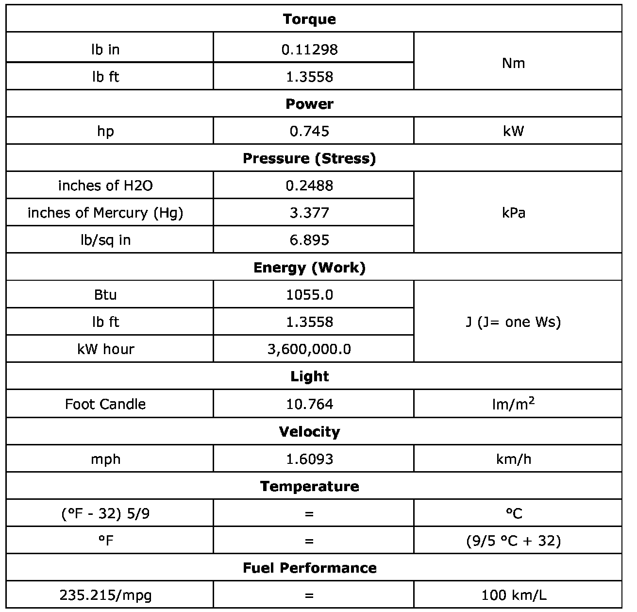 US English/Metric Conversion