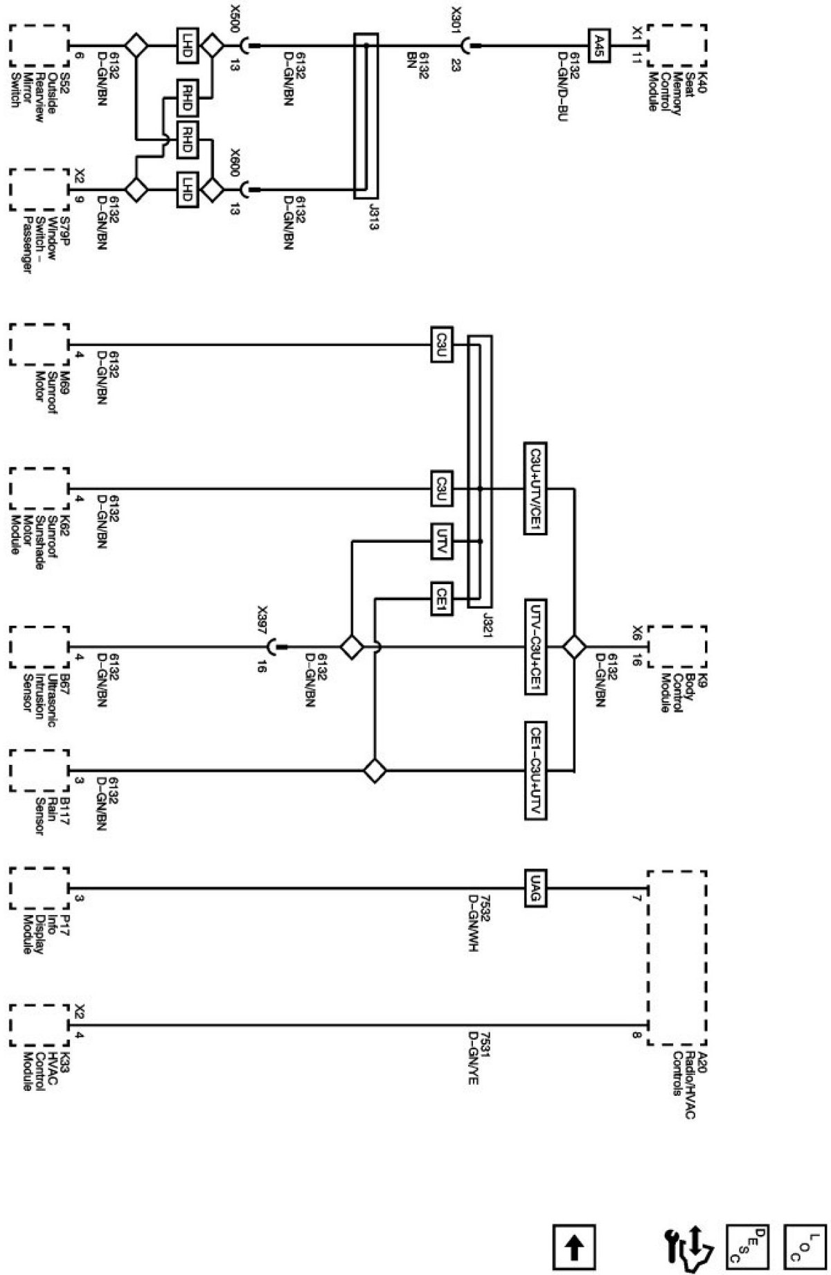 The diagrams for the power supplies that may be feeding this system (+30, +15, +54, +X, and +B) ) can be found at Power and Ground Distribution diagrams.