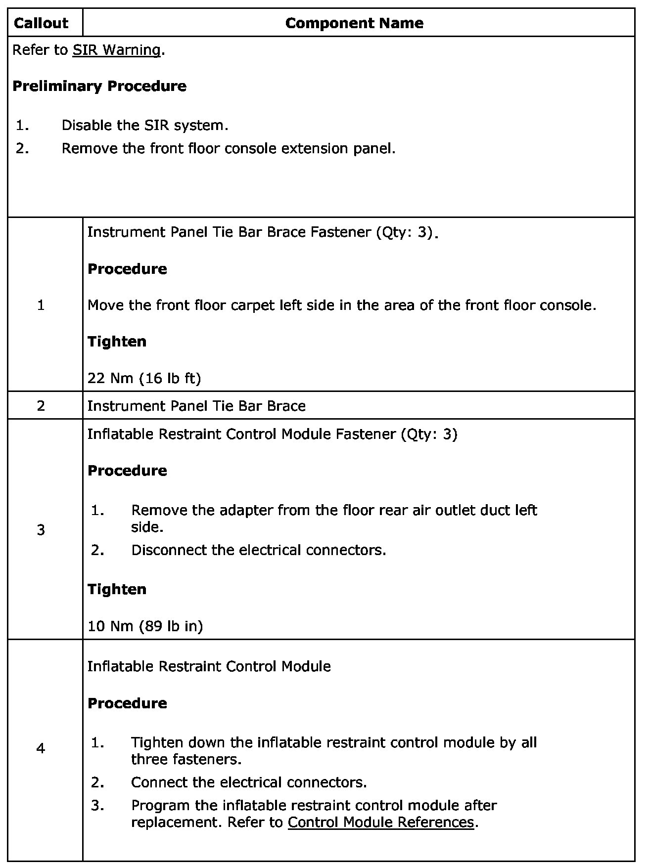 Inflatable Restraint Control Module Replacement