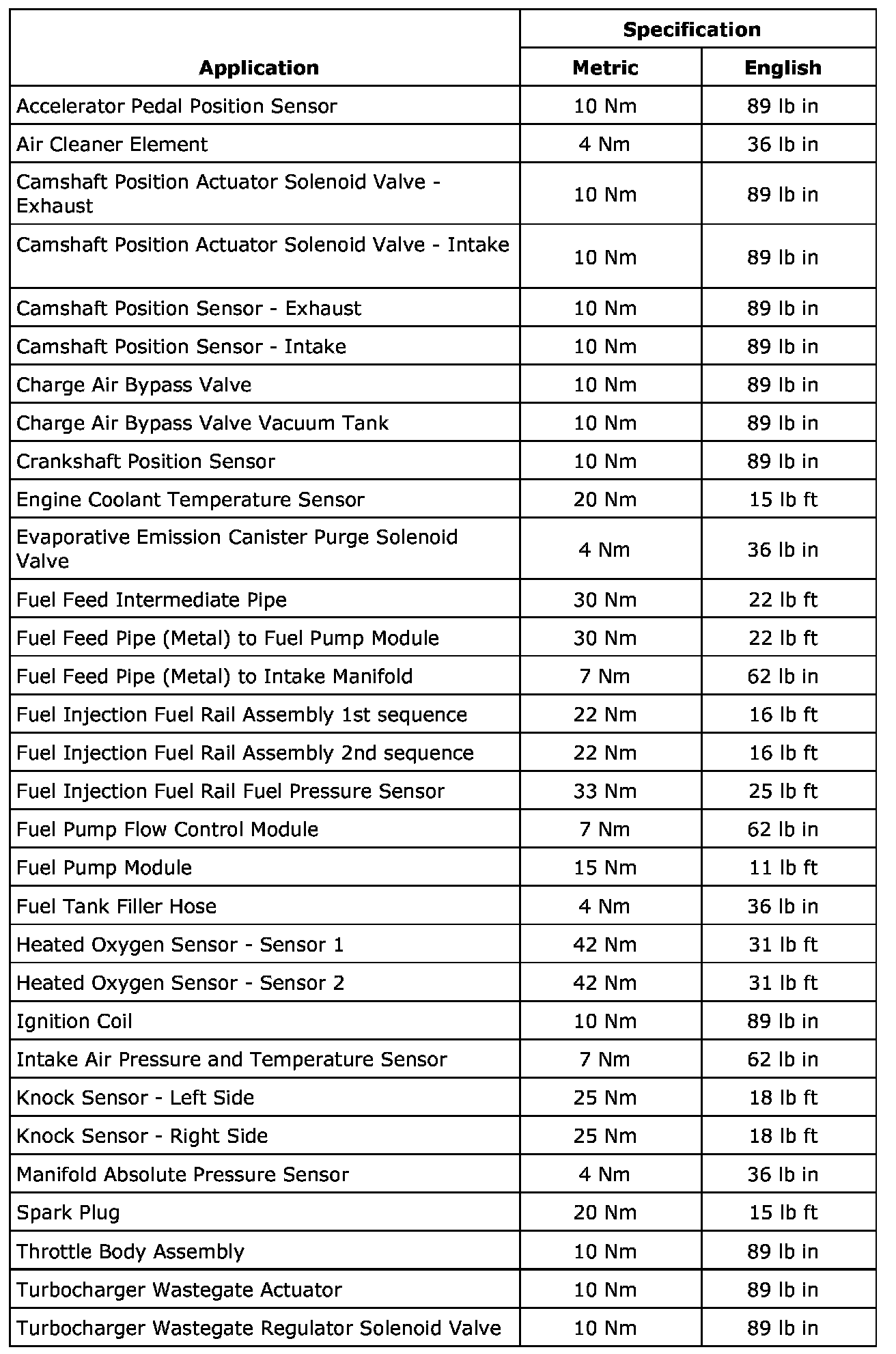 Fastener Tightening Specifications